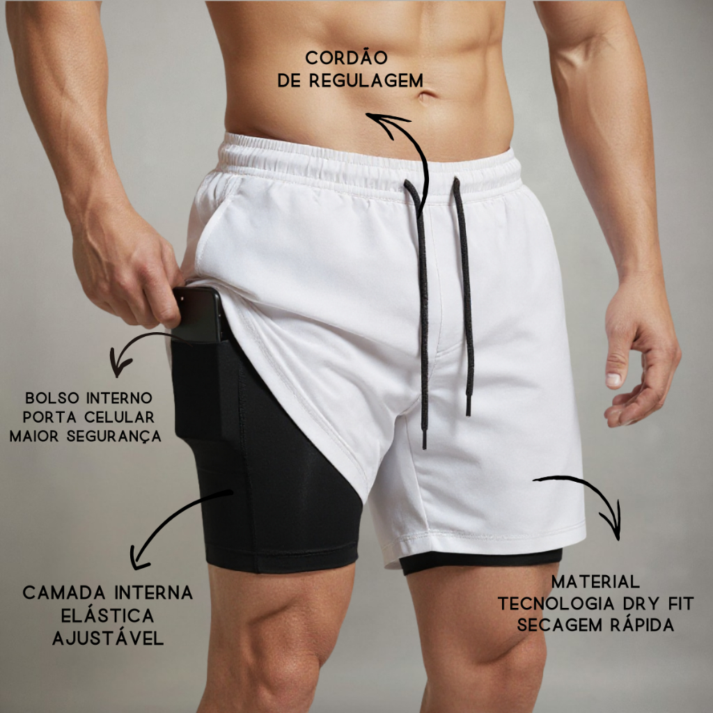KIT 3 Shorts 2 em 1 Bermuda Compressão MasculinO Dry Fit Elastano Academia Treino Original Bordbless