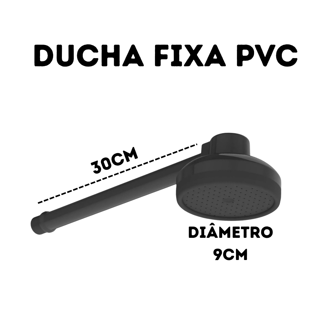 Chuveiro Ducha Fixa Fria 90mm 225mm 170mm PVC Cromada Branca Preta Piscina Banheiro ValePlast