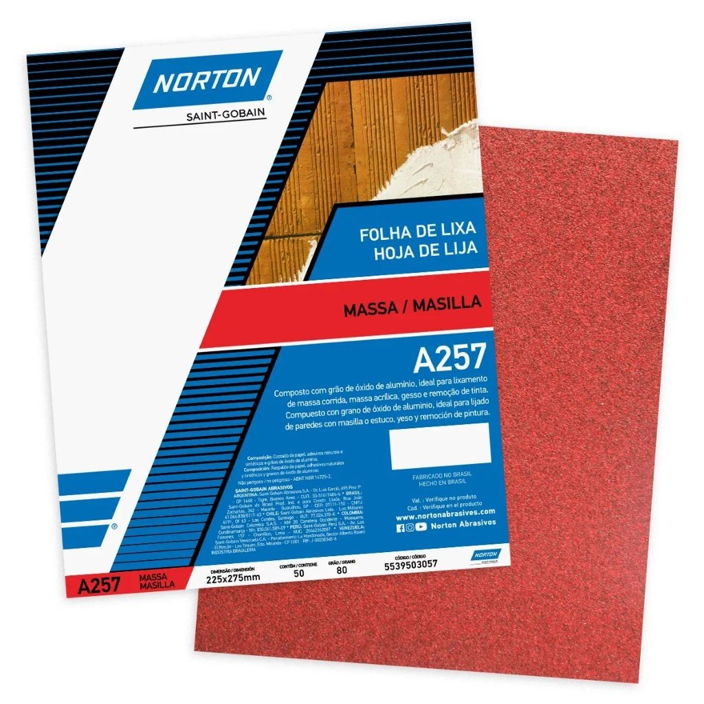 Lixa Massa Parede A257 Folha Grão 60 80 100 120 150 180 e 220 Norton Original