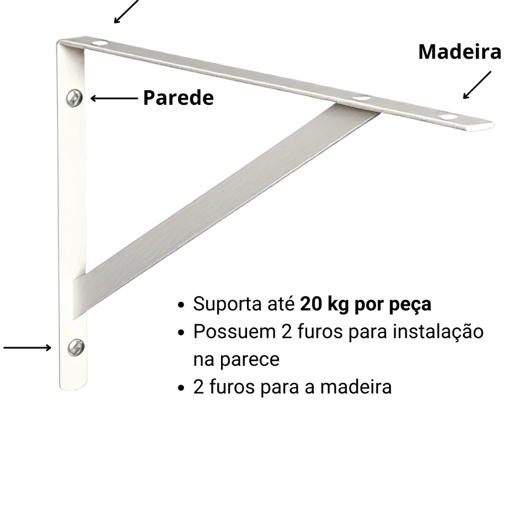 Kit 8 Suportes de 25 cm com Mão francesa para Prateleira, cor Branca ou Preta + Kit Instalação