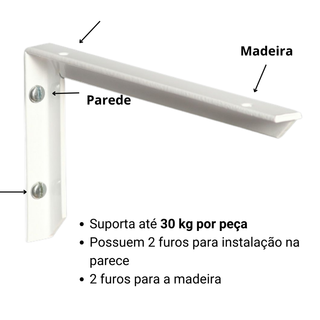 Kit 6 Suportes Master Leve 25 cm para Prateleira, cor Branca ou Preta + Kit Instalação