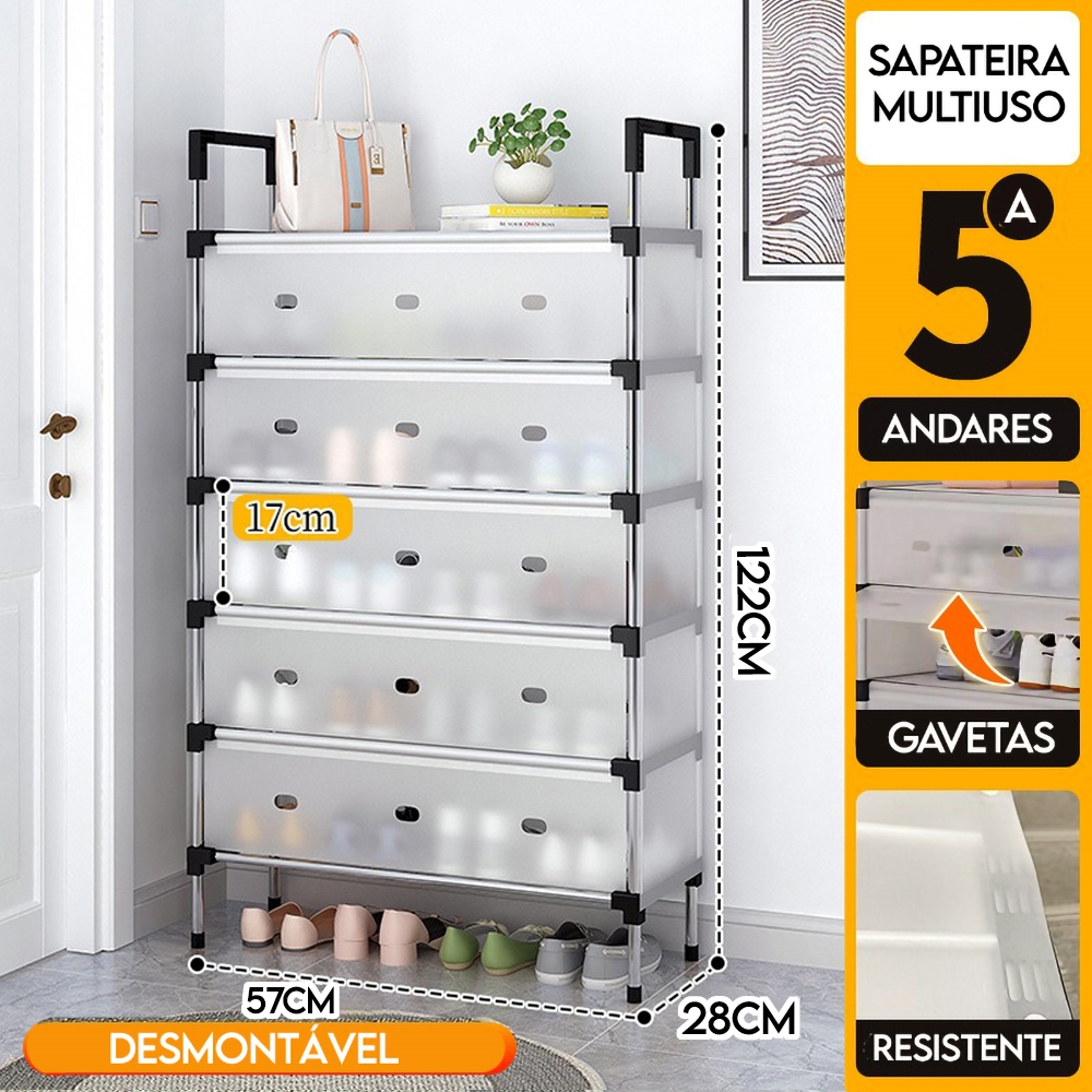 Sapateira Multiuso 5 Andares Com Porta Organizador de Calçados Desmontável Armário