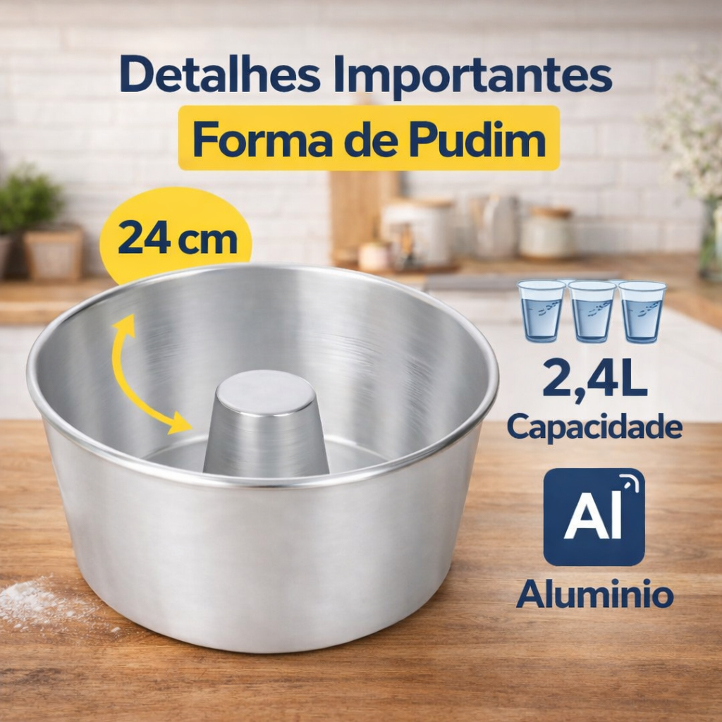 Forma para Pudim Grande Assadeira Redonda com tubo Nº 24 alumínio Resistente
