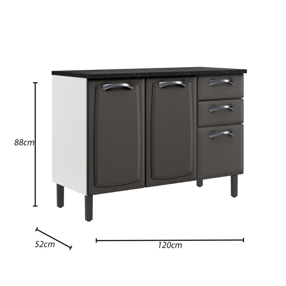 Balcão de Cozinha Itatiaia Com Tampo Aço 3 Portas 2 Gavetas New Premium Grafite/Branco
