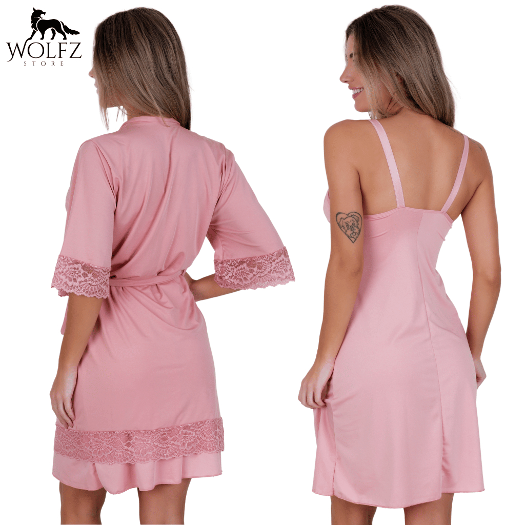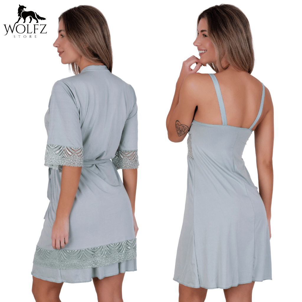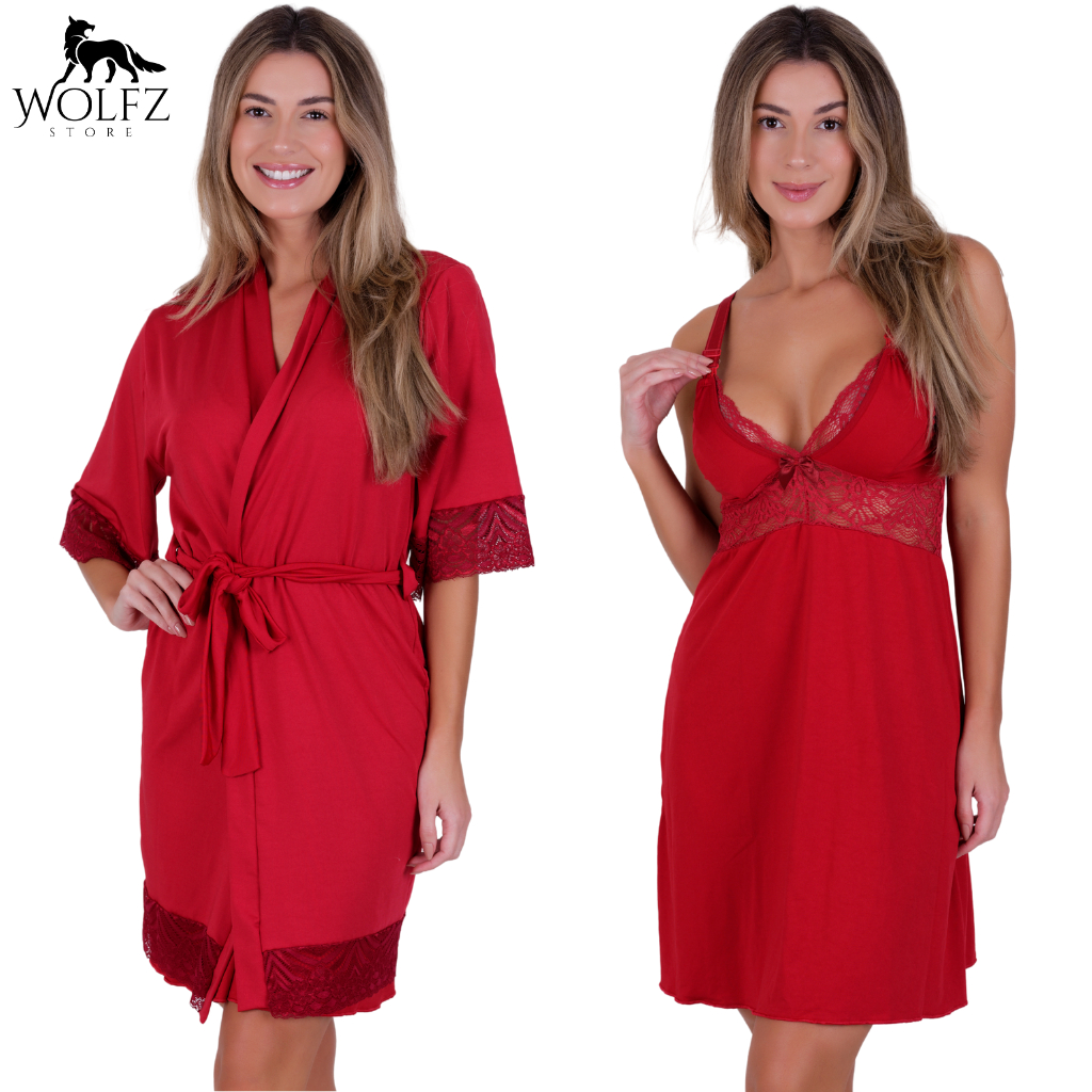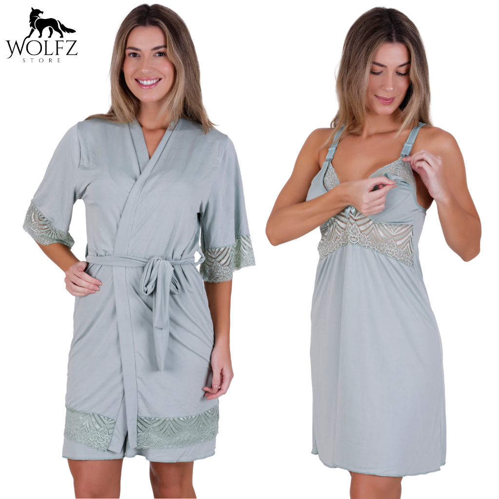 Kit Camisola Amamentação + Robe Luxo Confortável Com Renda Delicada Saída de Maternidade