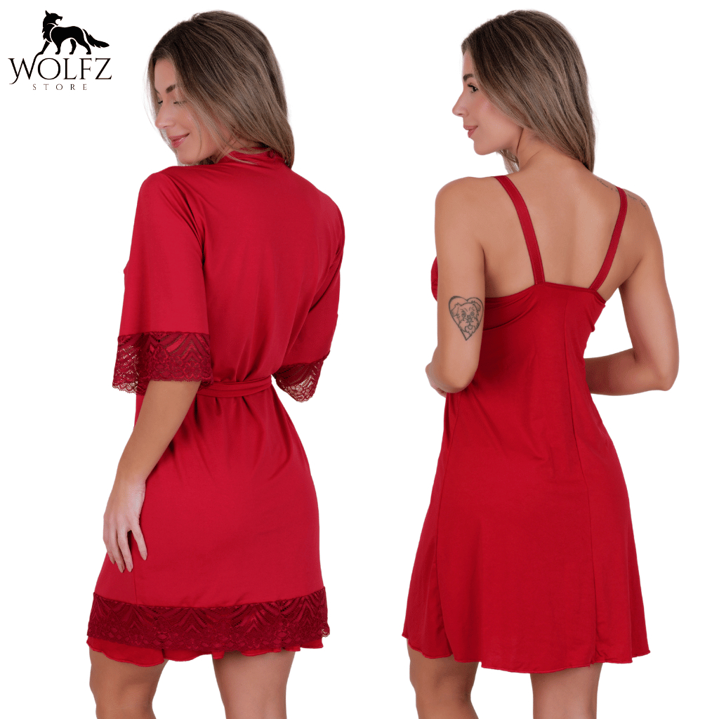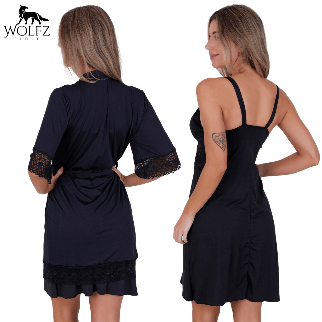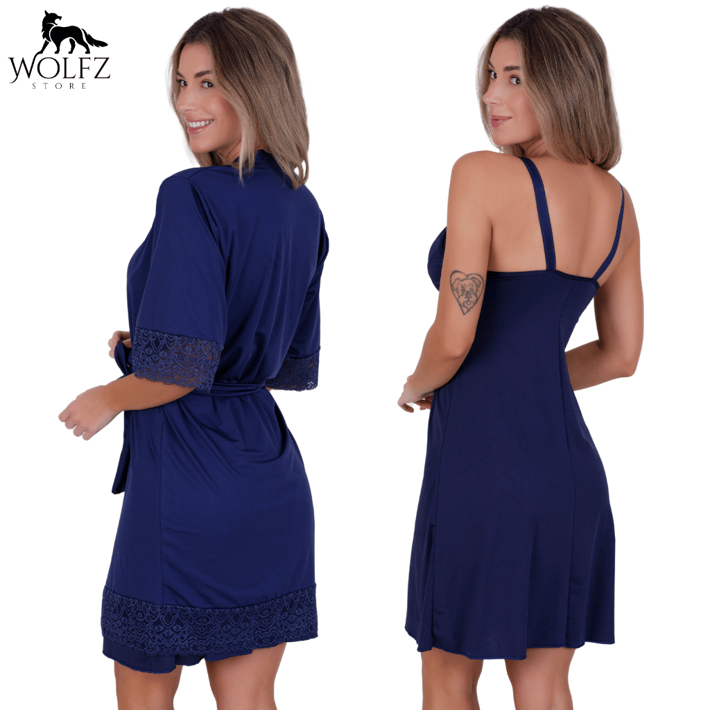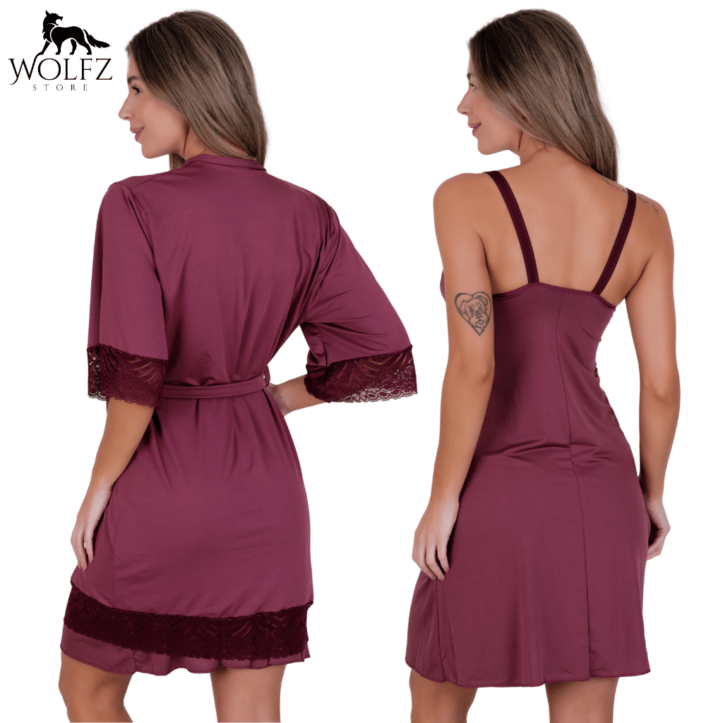 Kit Camisola Amamentação + Robe Luxo Confortável Com Renda Delicada Saída de Maternidade
