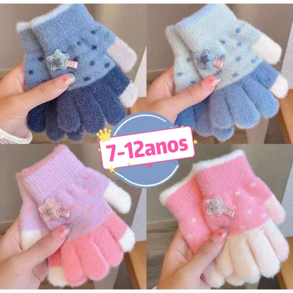 LUVAS INFANTIL ESTRELA INVERNO 7 ao 12 anos Térmica de Lã Infantil Tricô unissex