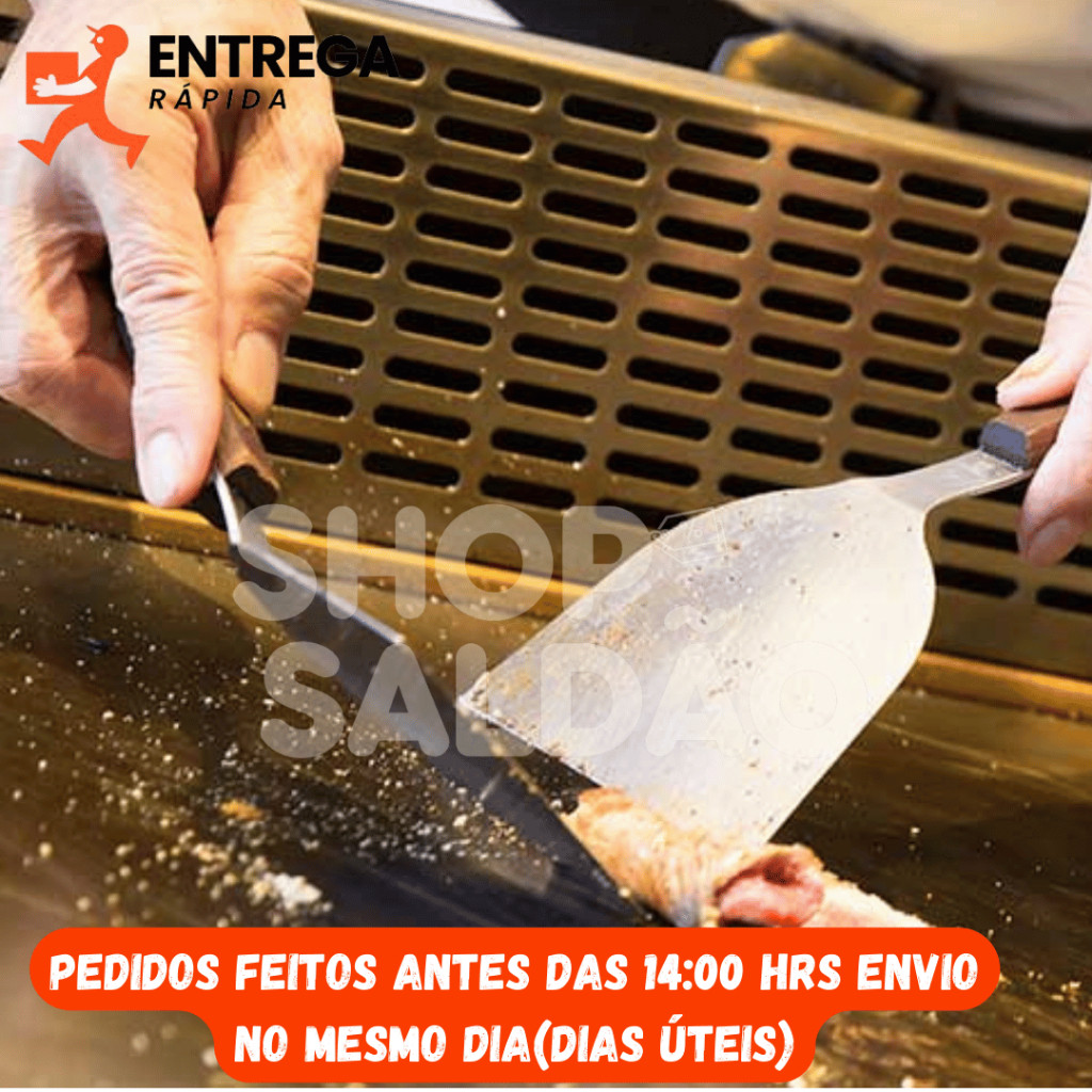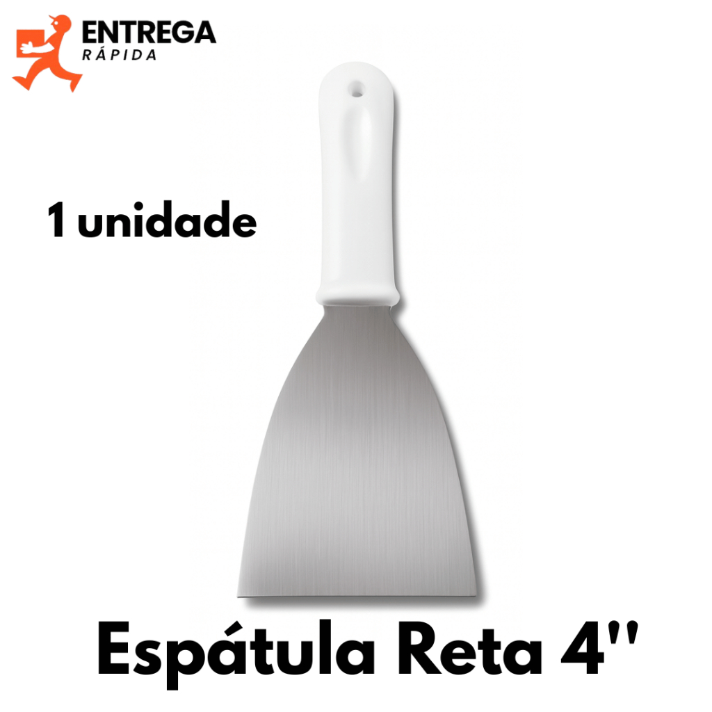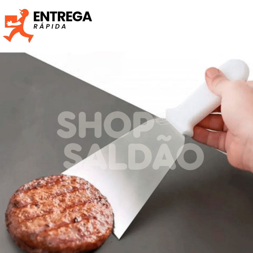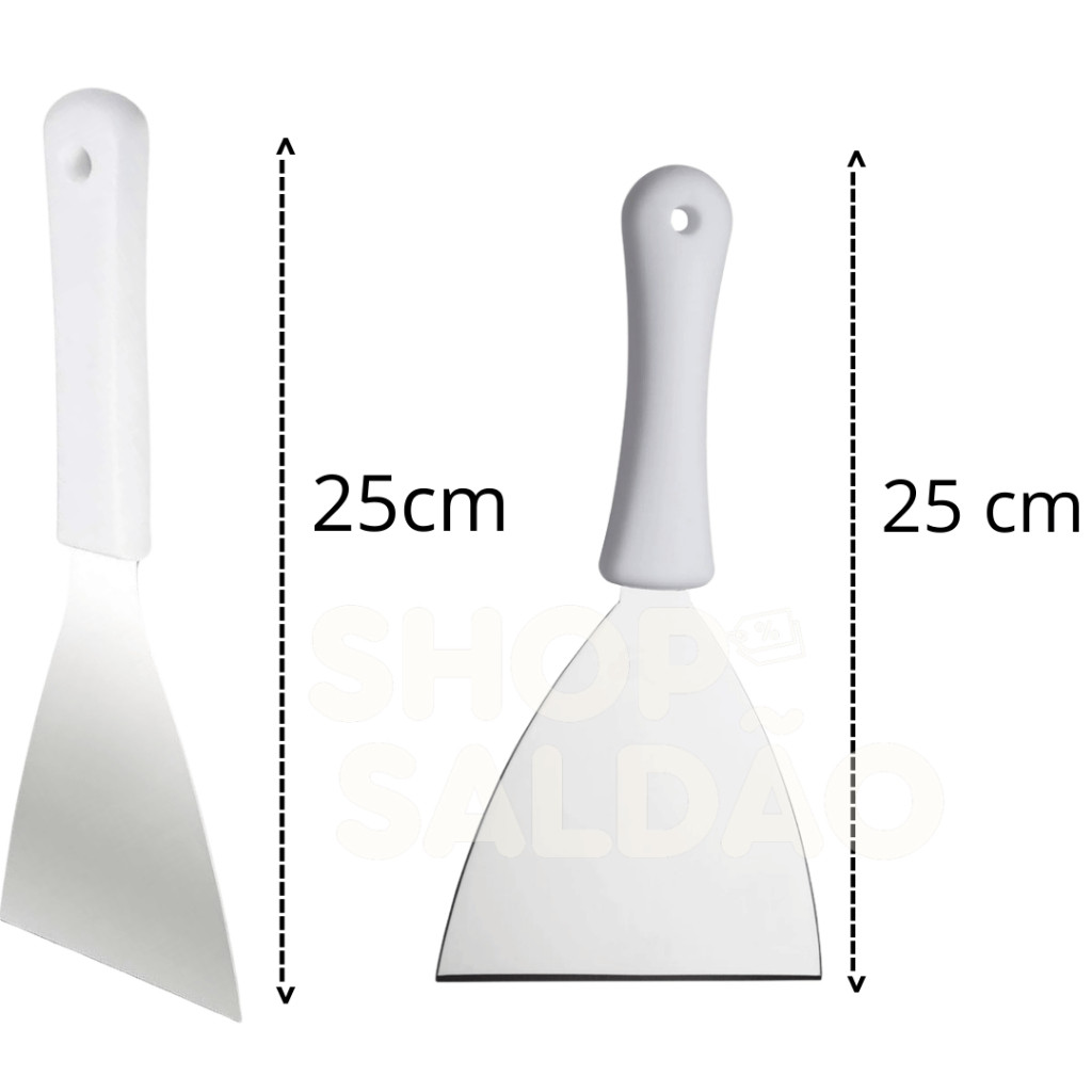 Kit 2 Espátulas Inox Cabo Branco 3” Curva e 4” Reta para Chapa Lanche Hambúrguer Grelhados