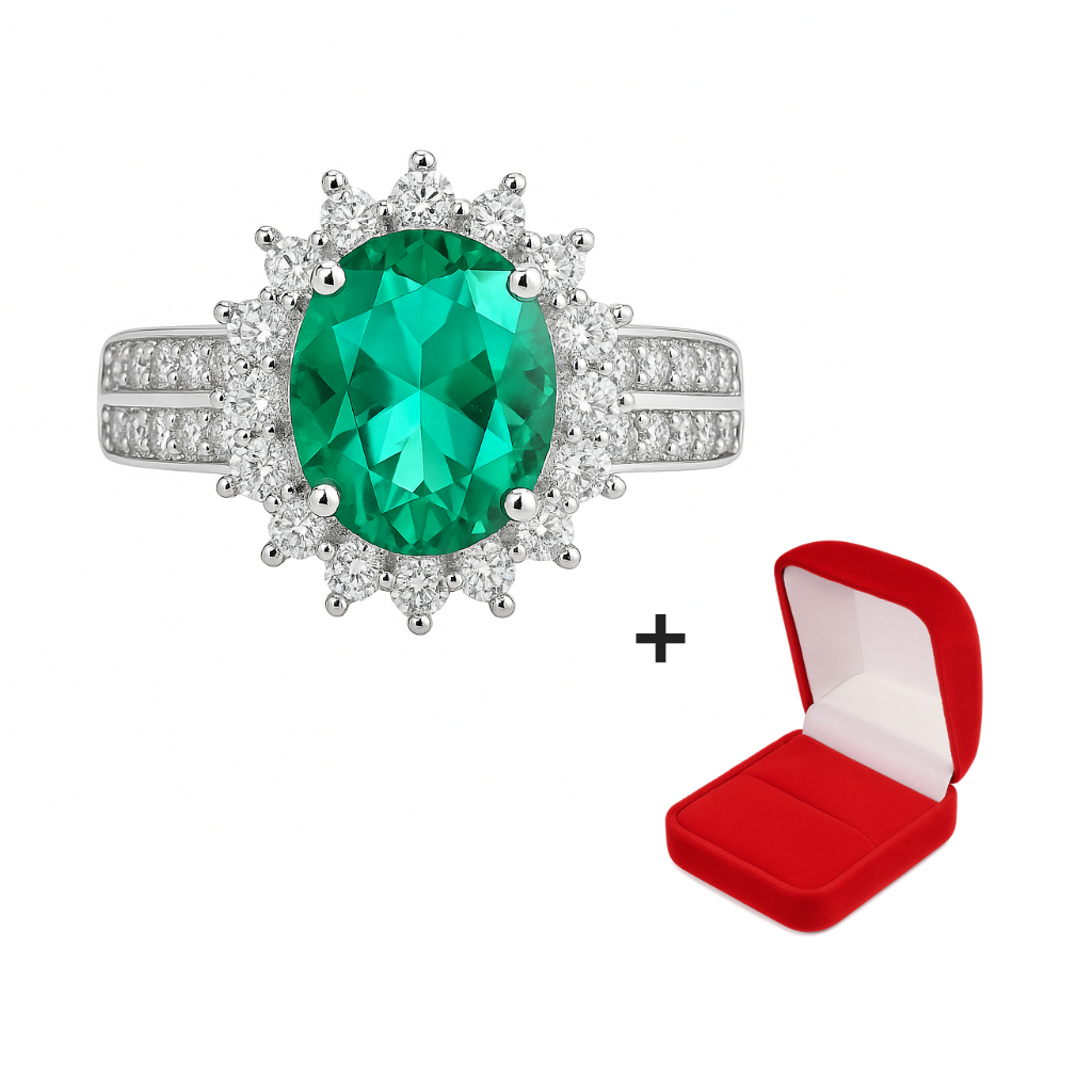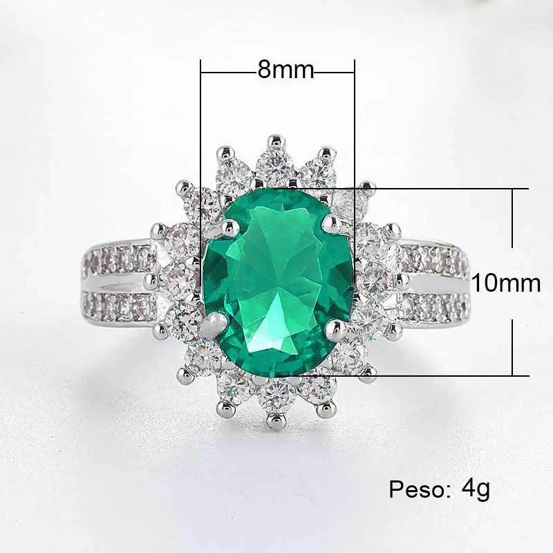Anel Verde Esmeralda de Prata 925 Banhado Cravejado com Zircônia