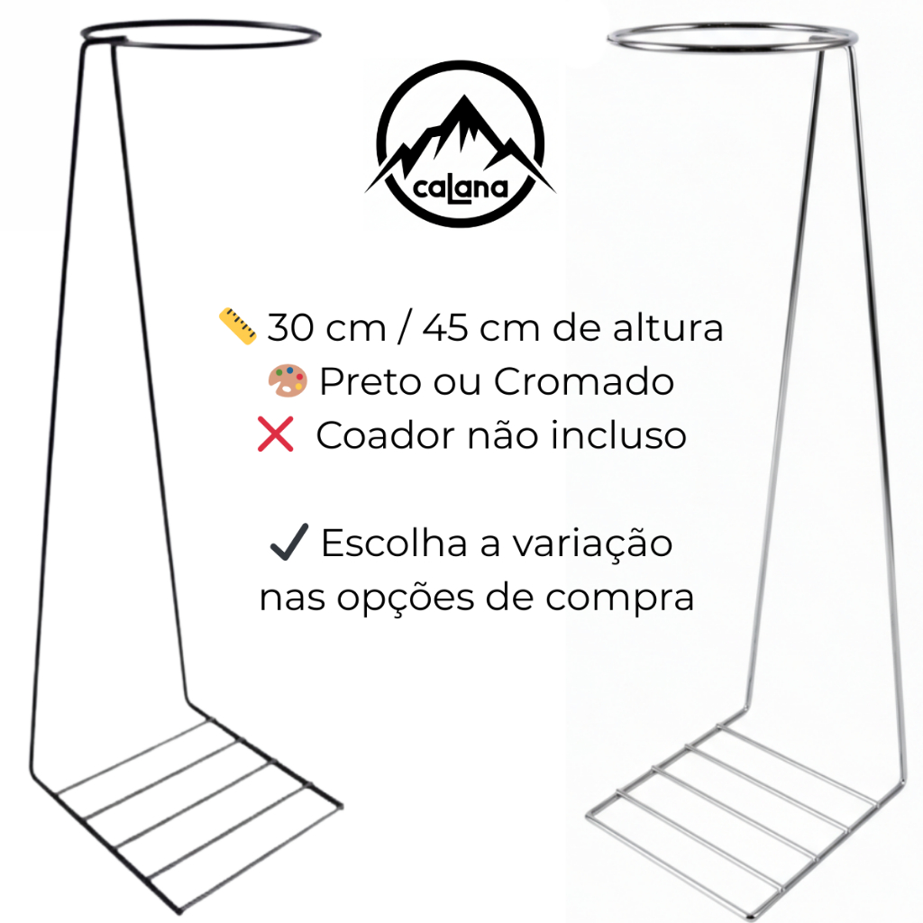 Suporte Coador Café De 30-45cm Direto Na Garrafa Preto ou Cromado Sem Refil