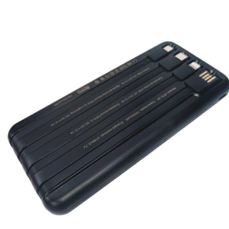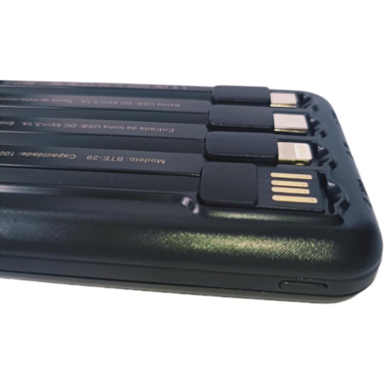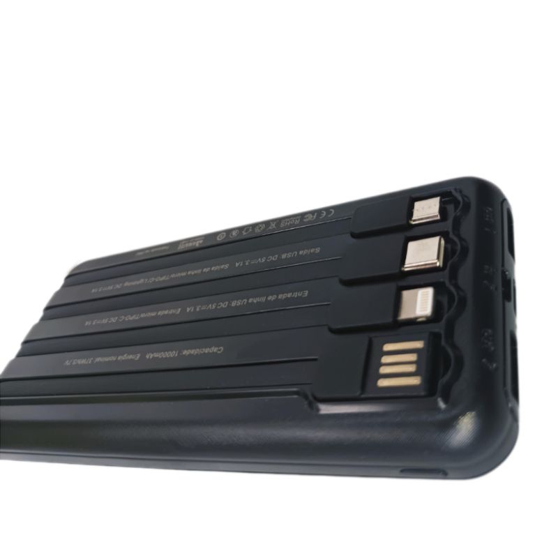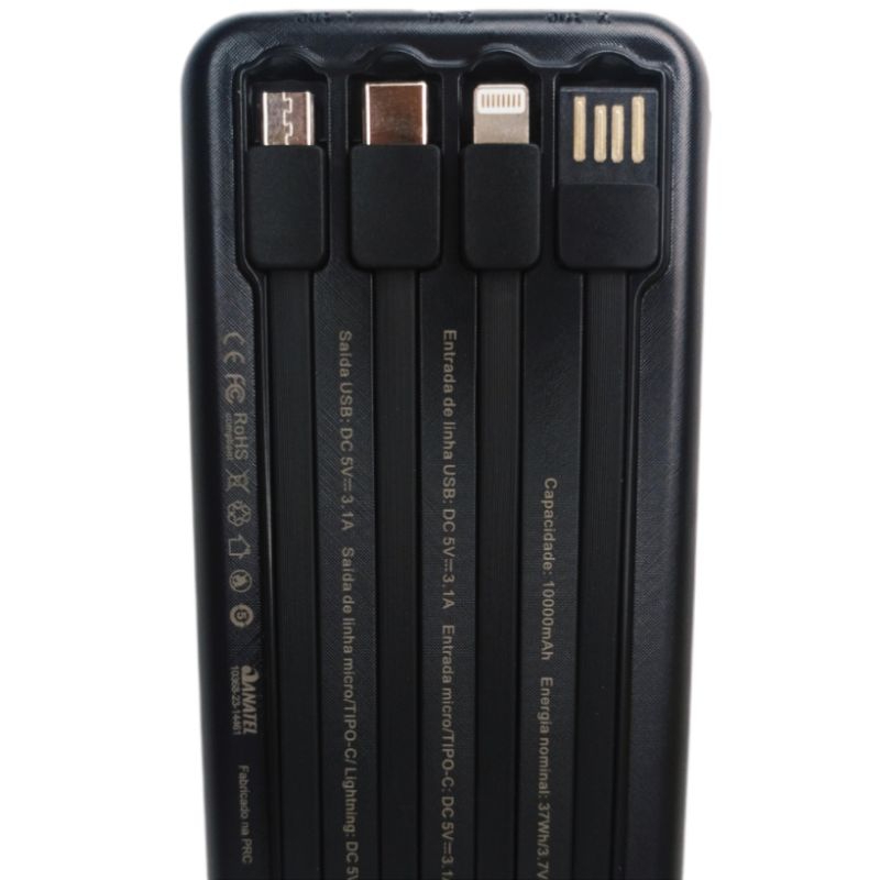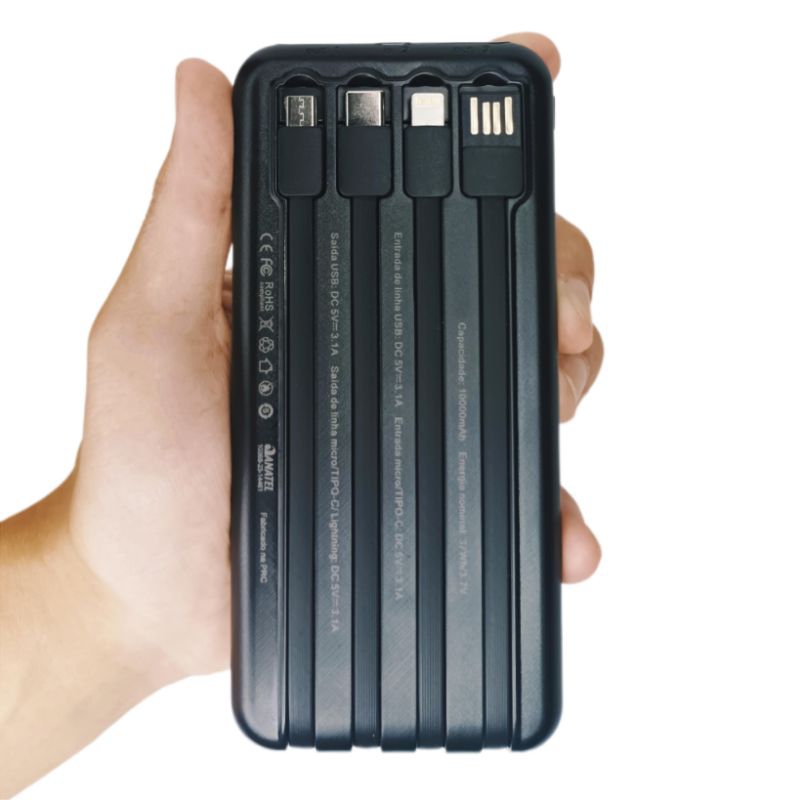 Carregador Portátil Power Bank 10000 mAh AGold Pro 4 Cabos Embutidos Lightnin Tipo-C Micro Usb, USB