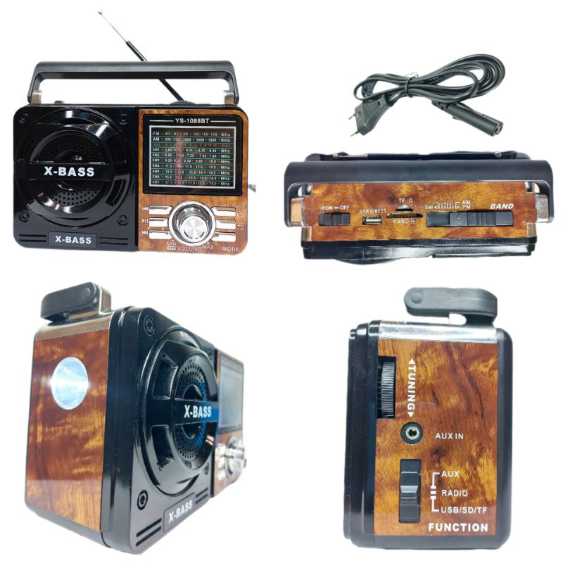 Rádio Bluetooth Retrô Portátil Cartão Sd PenDrive FM Entrada P2 Recarregável 110V/220V Bivolt Pilhas