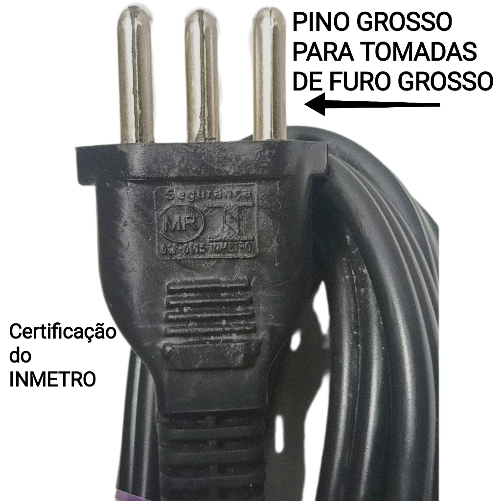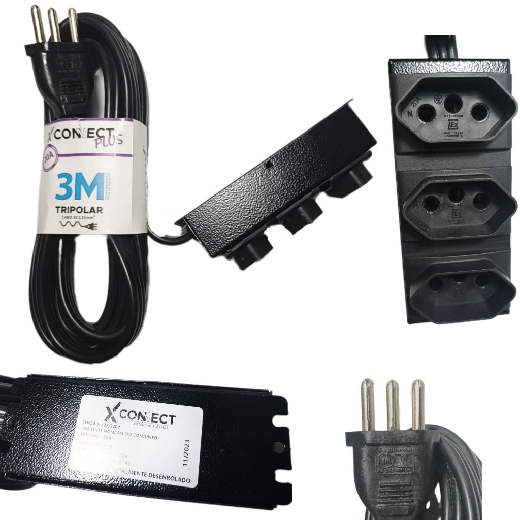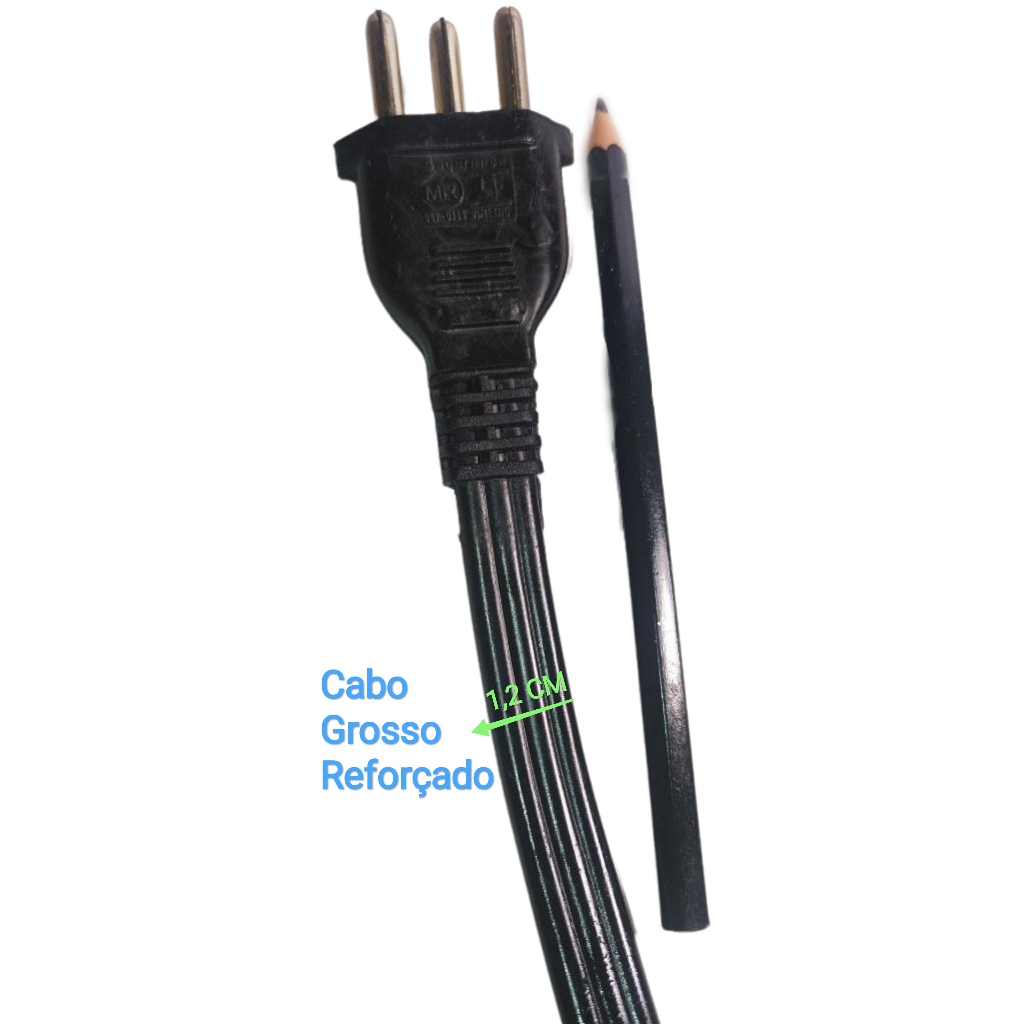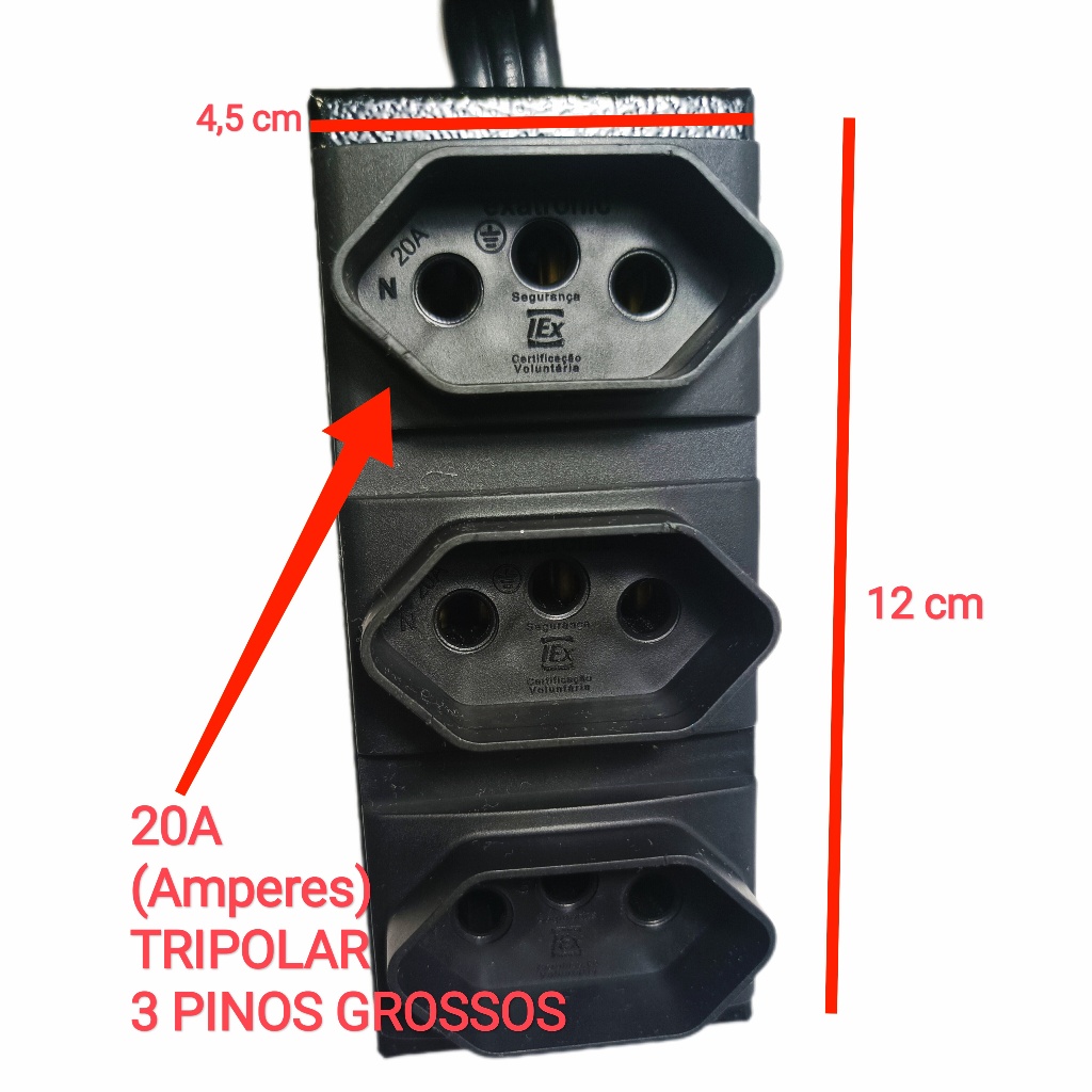 Extensão de Tomada 20A Tripolar Pino Grosso 3 Tomadas Cabo 3M Bivolt