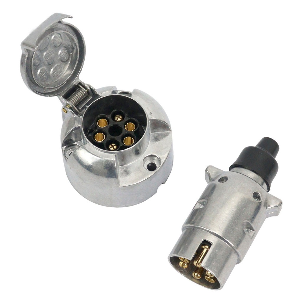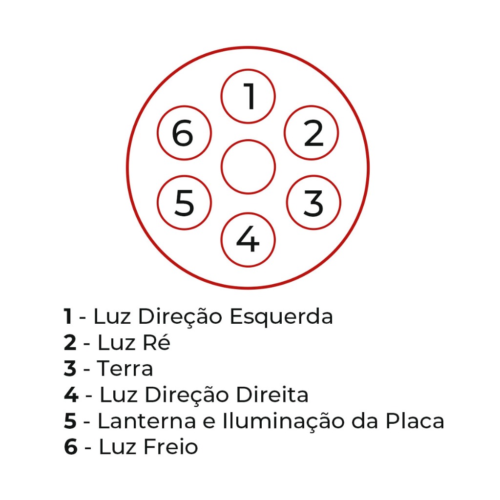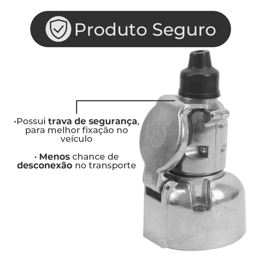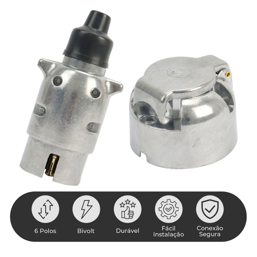 Tomada Engate Reboque Completa Fêmea Macho Cromada 6 Polos Carretinha Carreta Caminhonete Alumínio