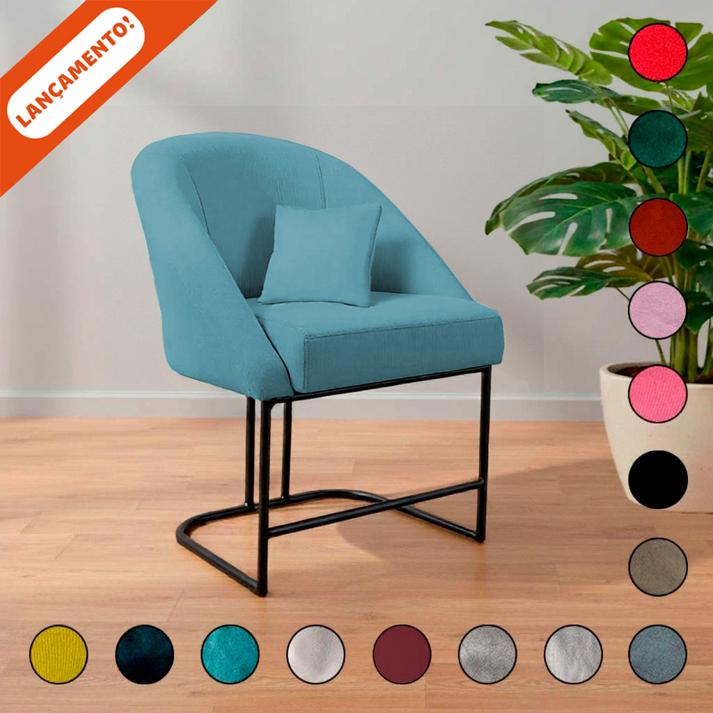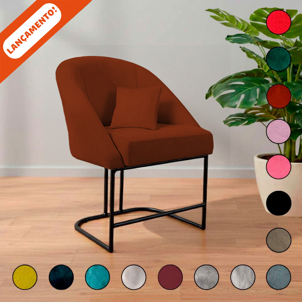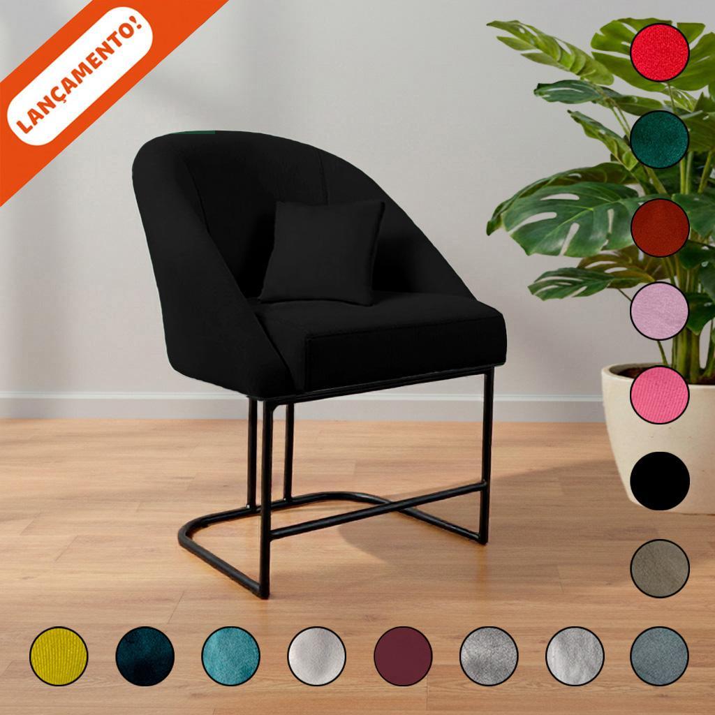 Poltrona Decorativa Para Sala Lua Base de Ferro Preto Com e Sem Almofada Suede Aninha Decor