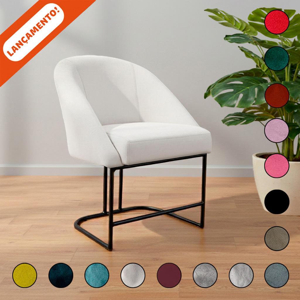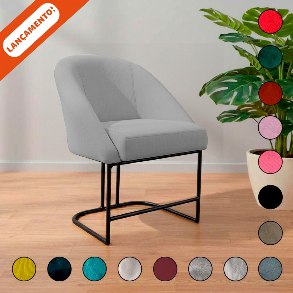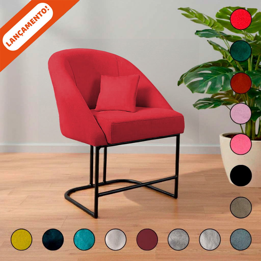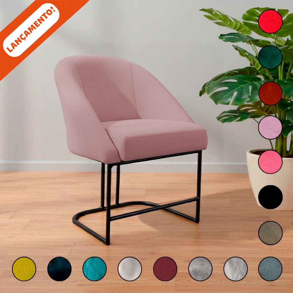 Poltrona Decorativa Para Sala Lua Base de Ferro Preto Com e Sem Almofada Suede Aninha Decor