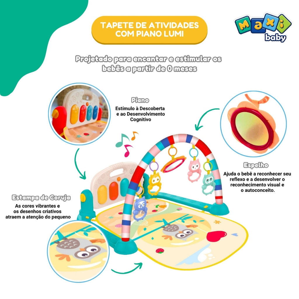 Tapete Ginásio de Atividades Para Bebê Piano Lumi Maxi Baby