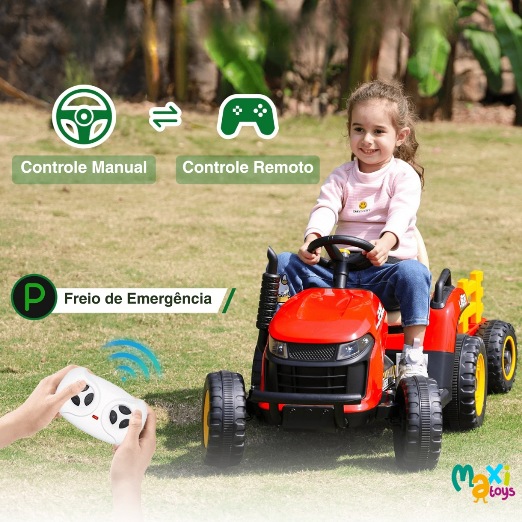 Trator Elétrico Infantil Com Controle 2 Marchas Maxi Toys