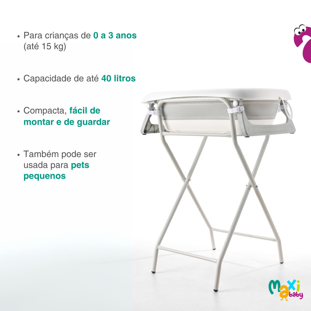 Banheira Para Bebê Dobrável C/Suporte Wish Branco Maxi Baby