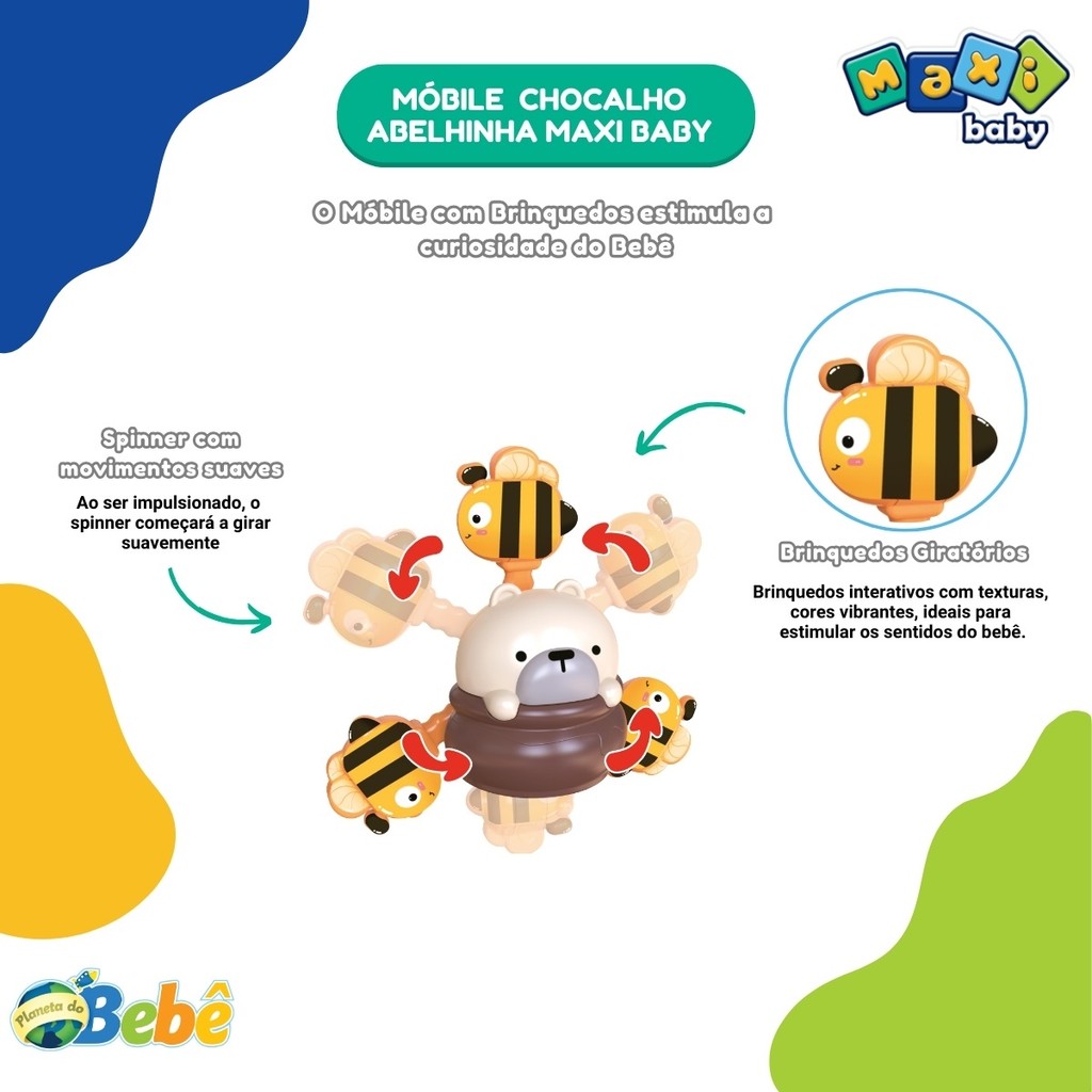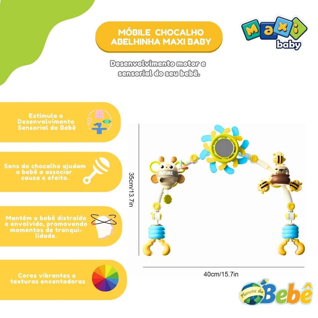 Móbile Chocalho Bebê Carrinho Berço Cadeirinha Bee Maxi Baby
