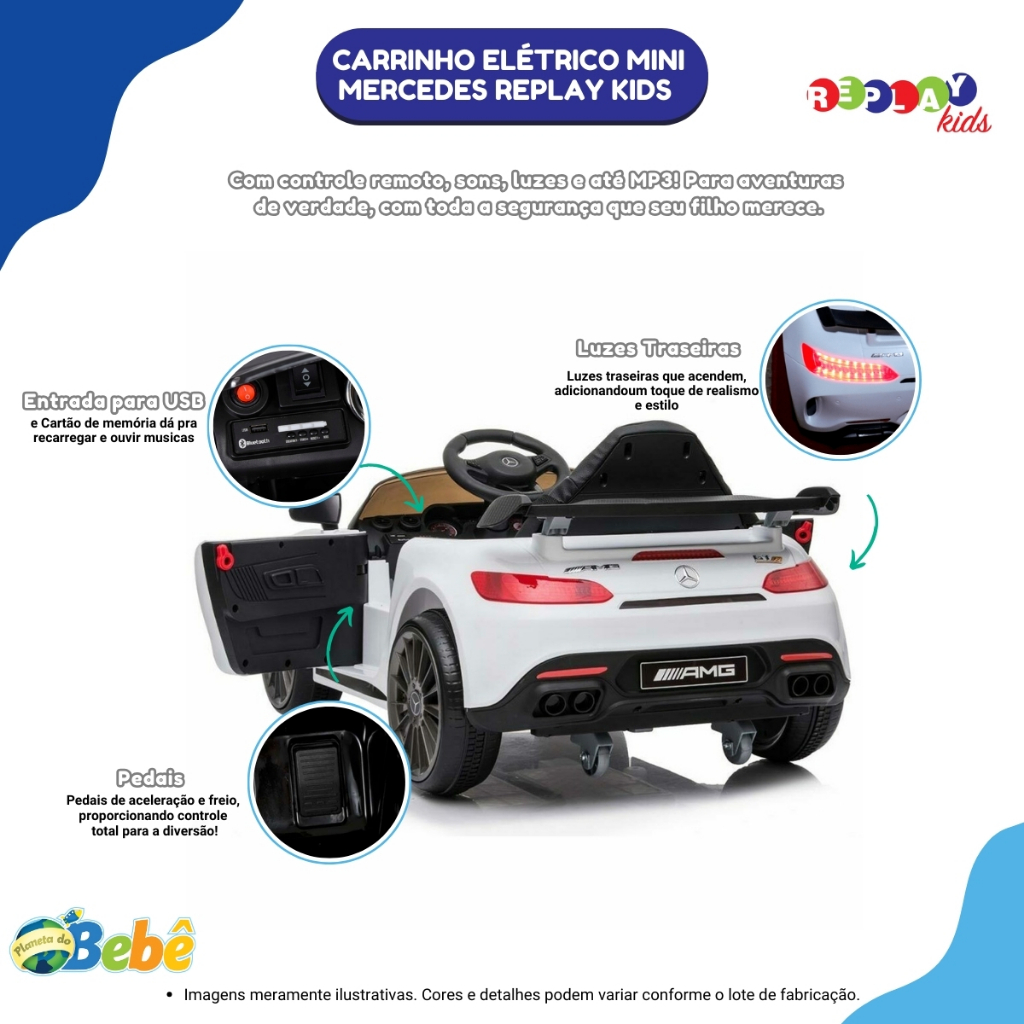 Carrinho Elétrico Infantil Mini Mercedes Replay Kids