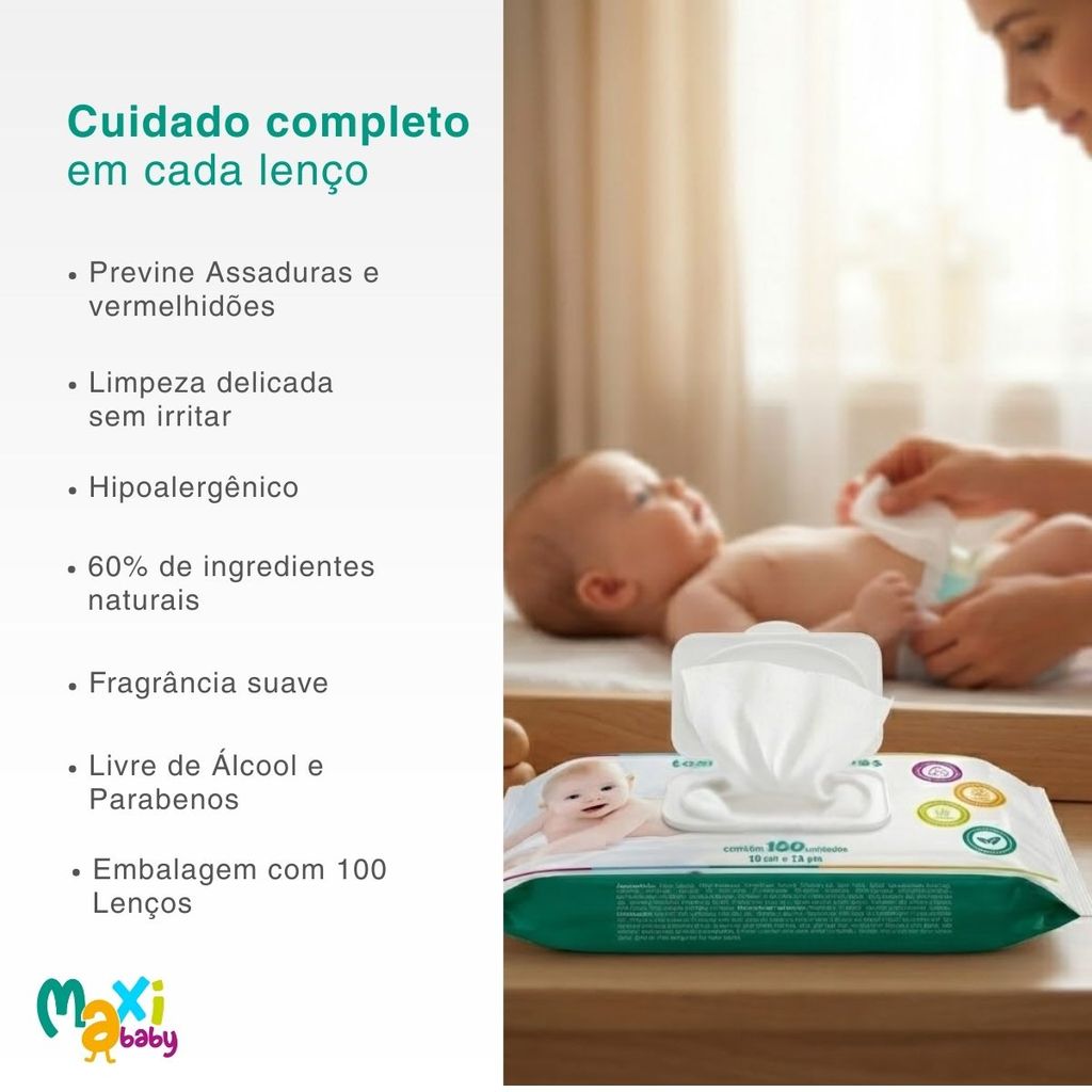 Toalha Lenço Umedecido Hipoalergênico Bebê 100un Maxi Baby