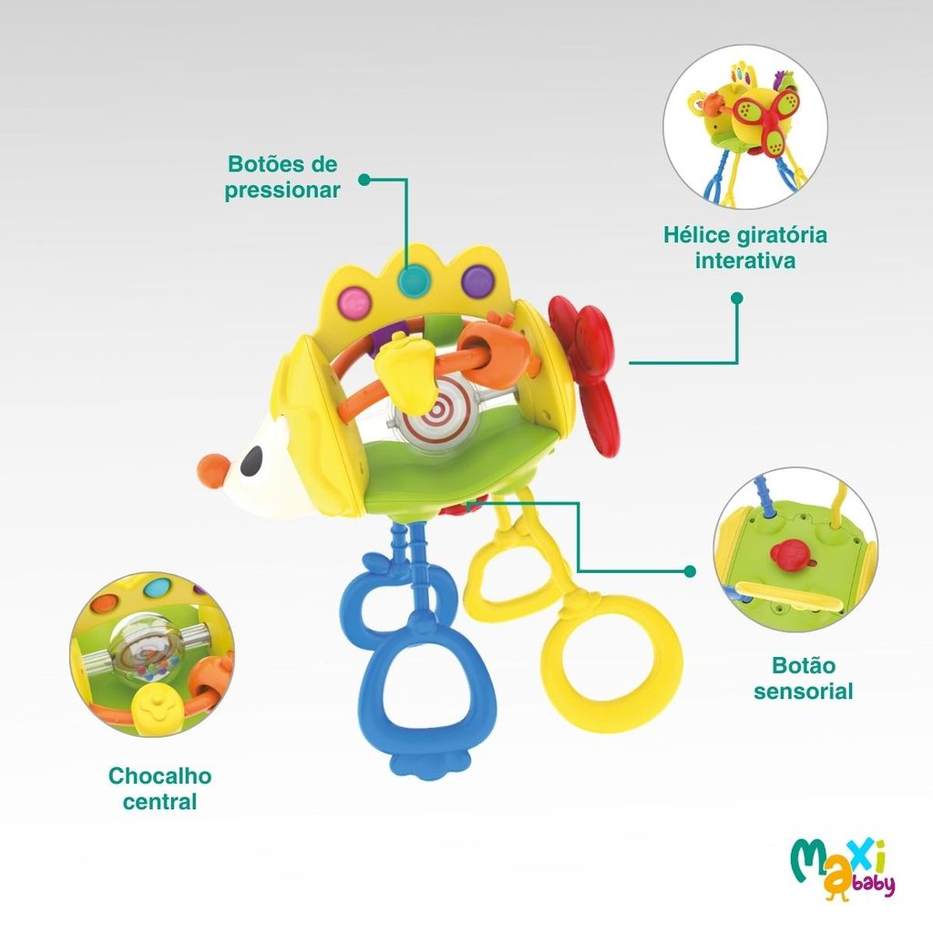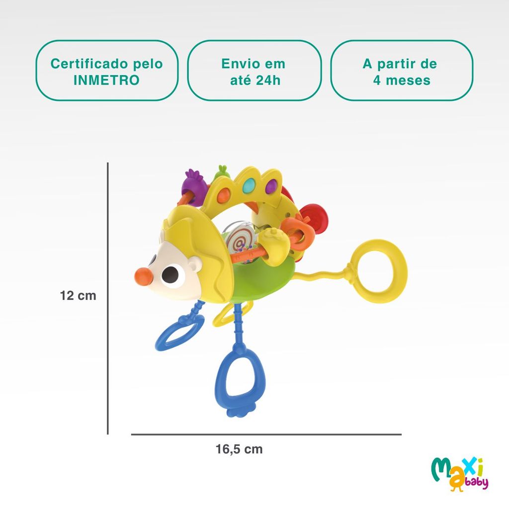 Brinquedo Mordedor Sensorial e Chocalho Para Bebê Maxi Baby