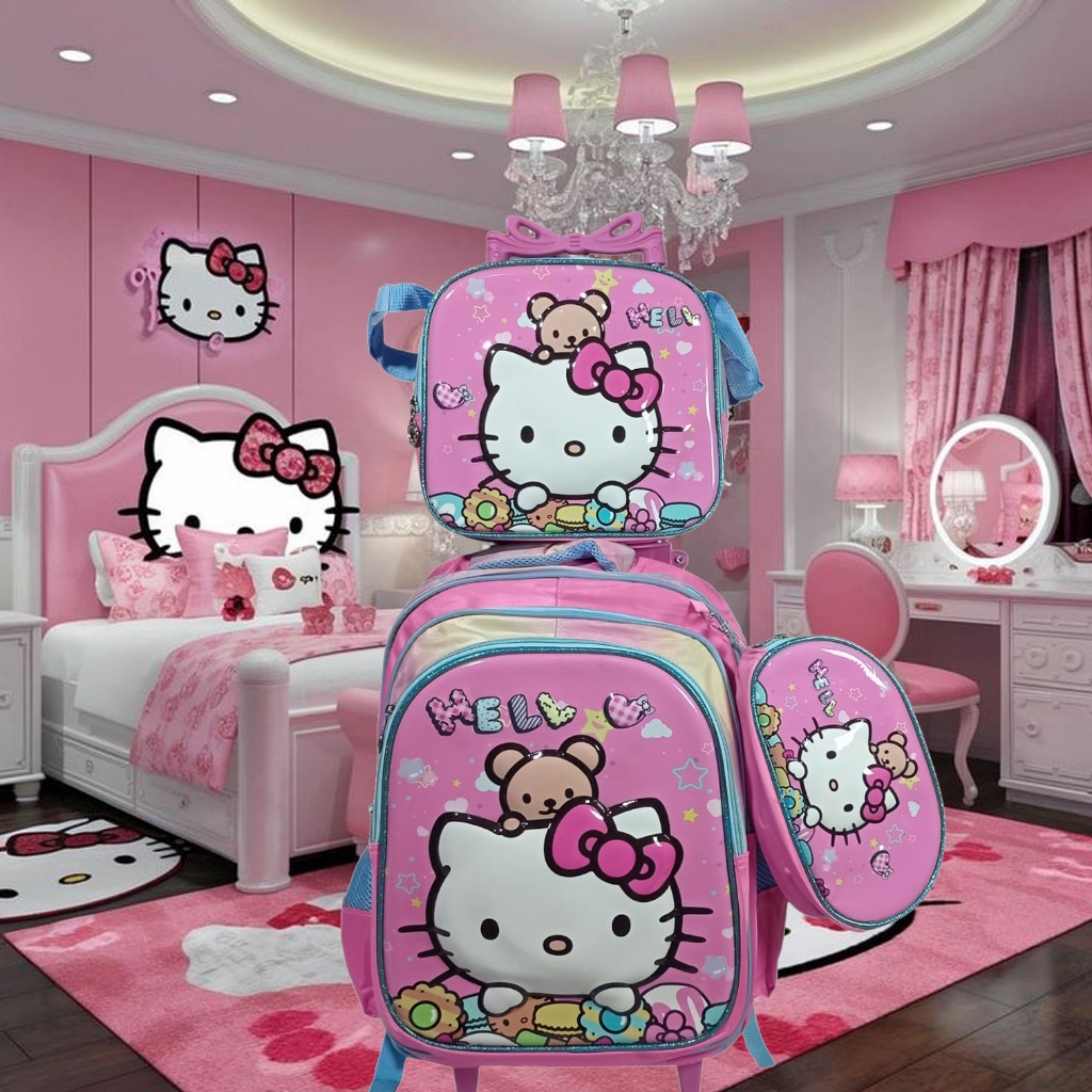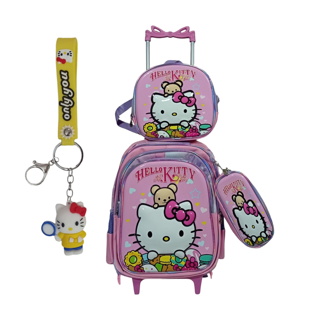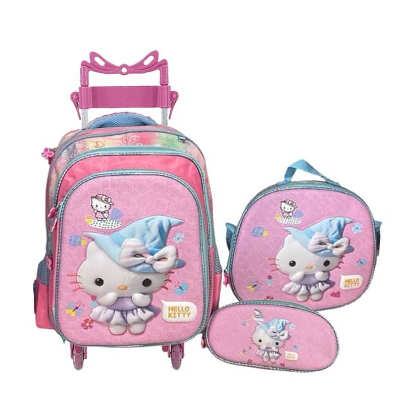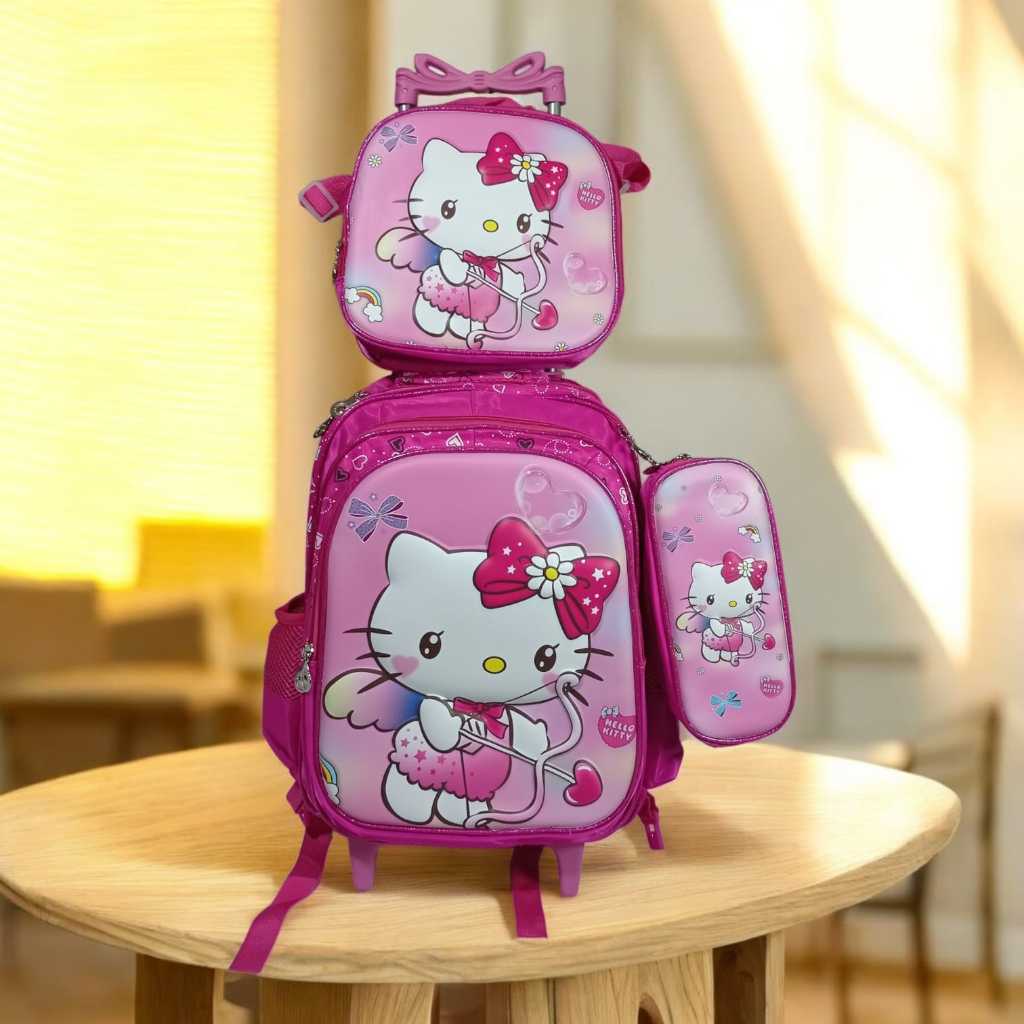 Kit Mochila Escolar HelloKitty, Rodinha Estojo Lancheira Infantil Resistenten e Entrega Rapido