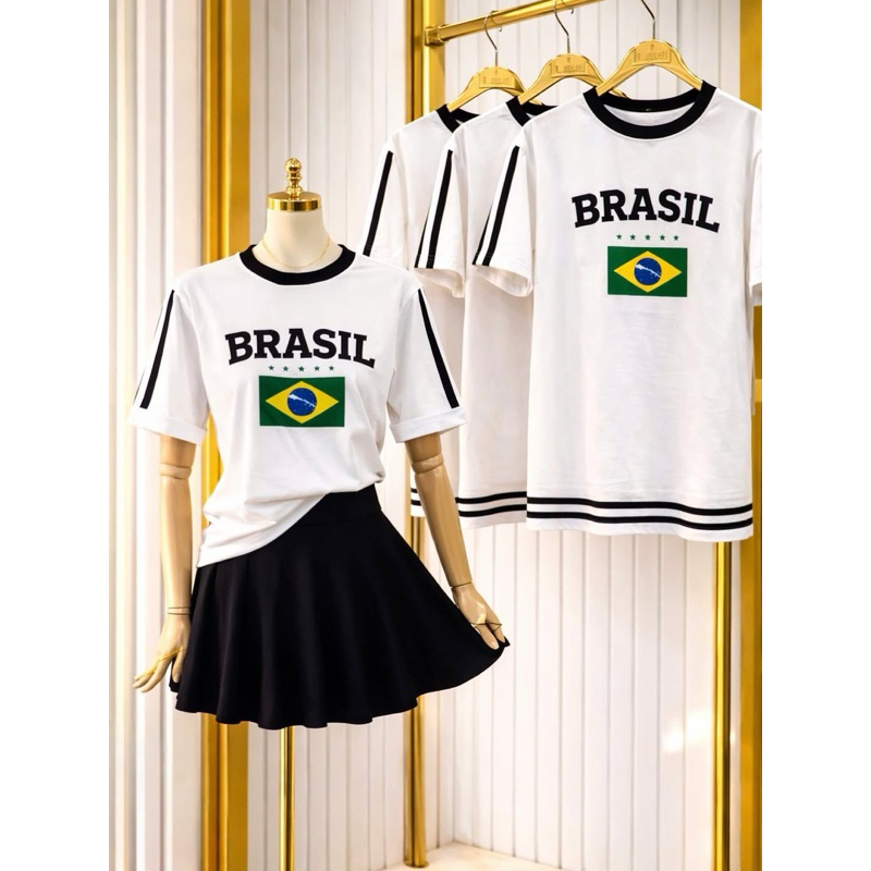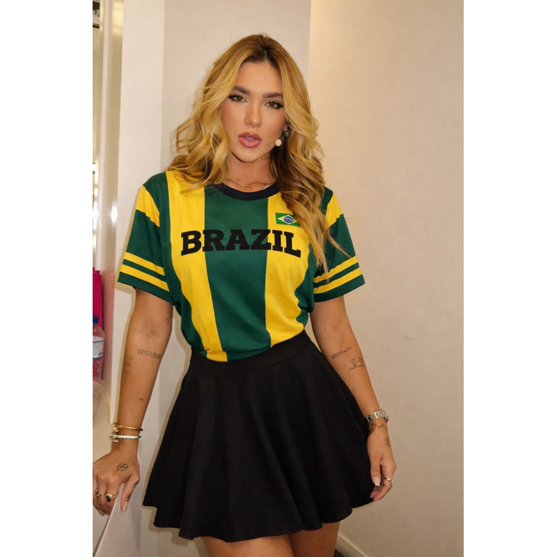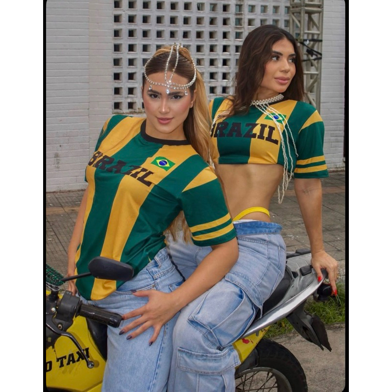 Blusa Brasil Verde e Amarela Feminina Sued Premium 🇧🇷 Veste 36 ao 44 Tendência Copa