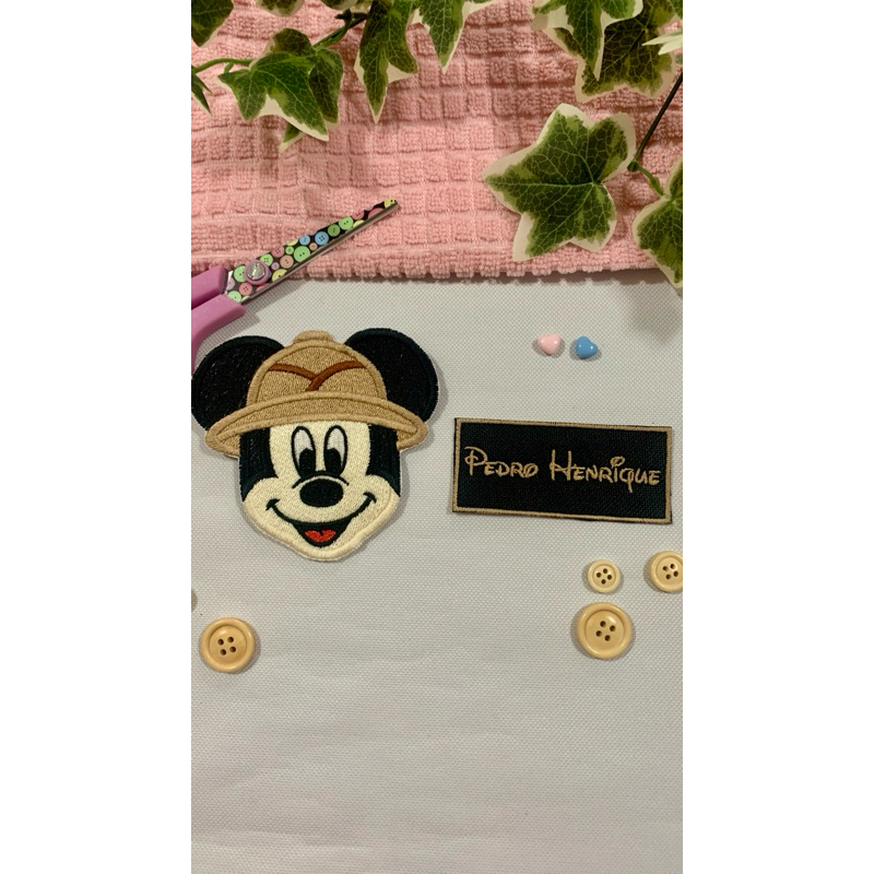 Patches Bordados Termocolantes Mickey Safari e Tag Nome