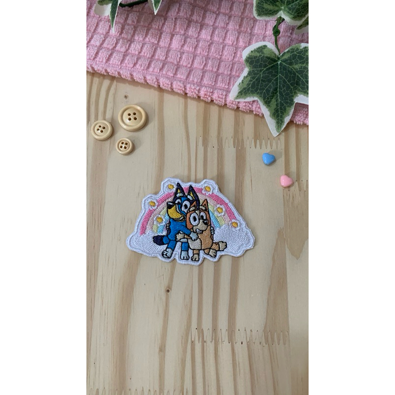 Patch Bordado Termocolante Bluey e Bingo Arco-Iris Flores