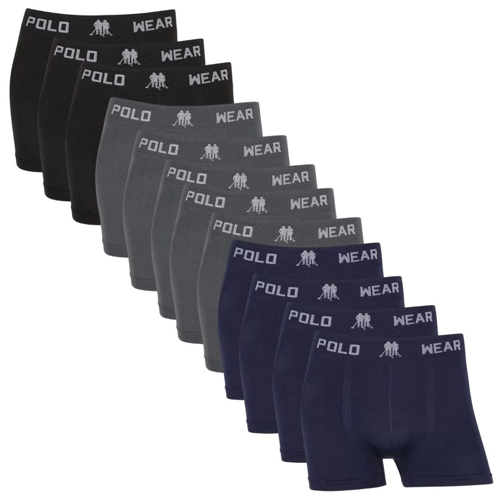 Kit 12 Cueca Boxer Masculina Microfibra Polo Wear Sem Costura Original