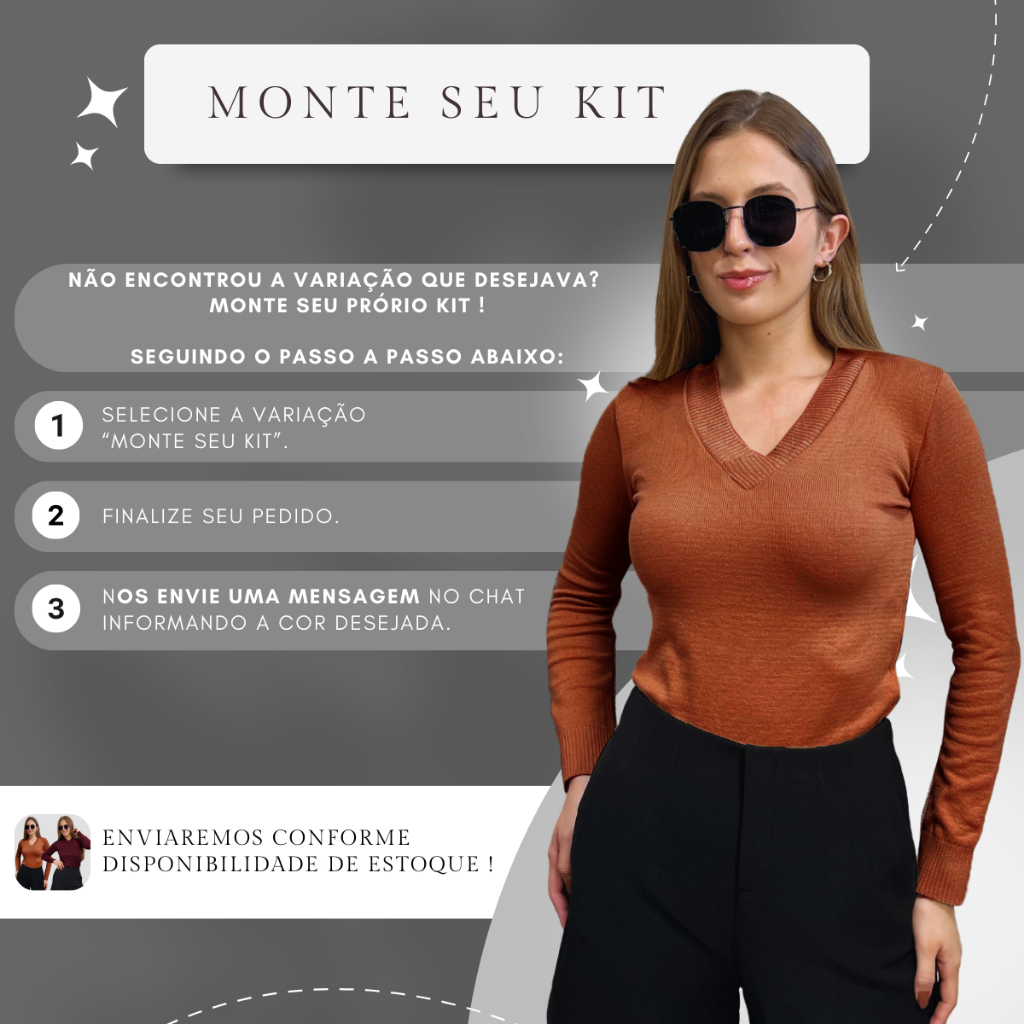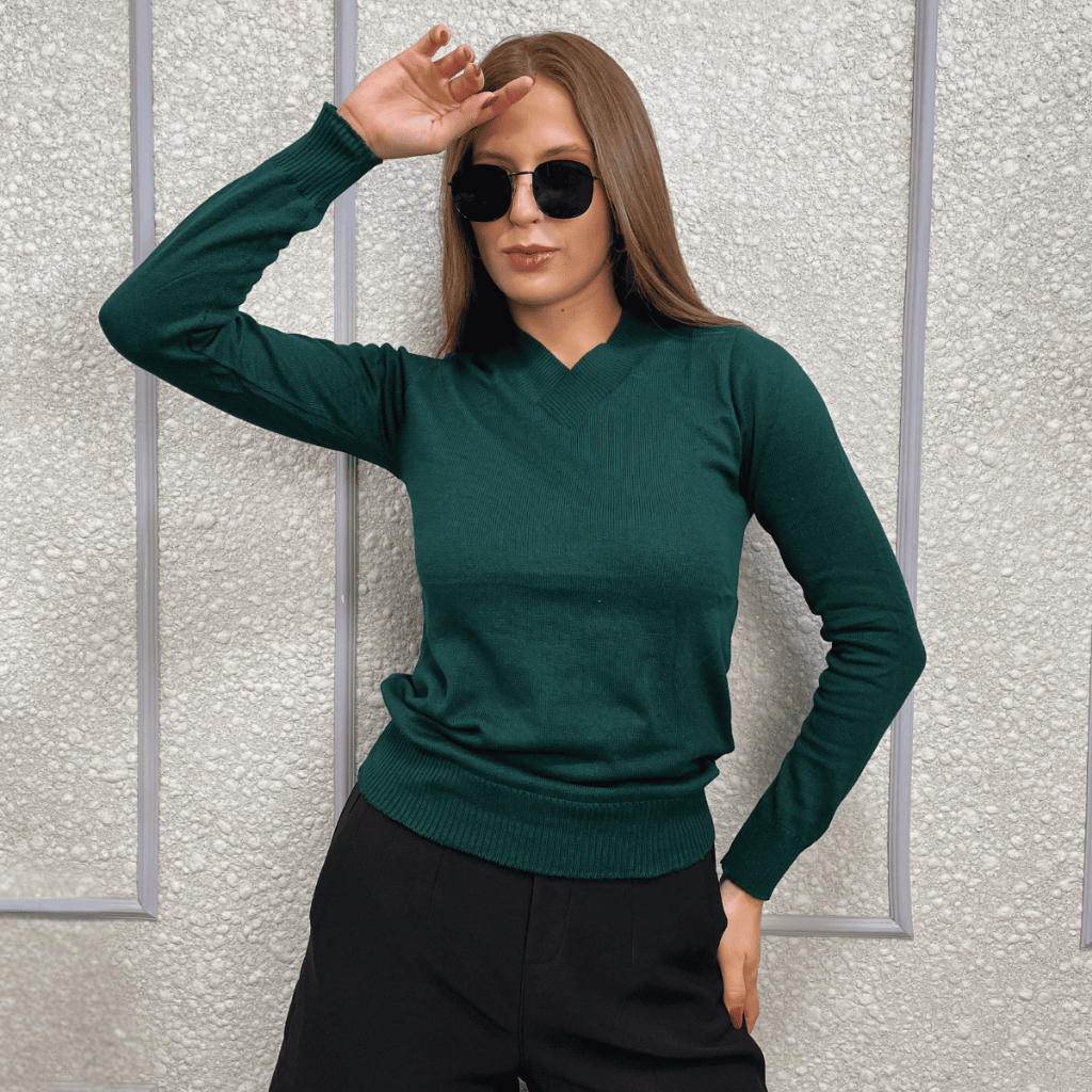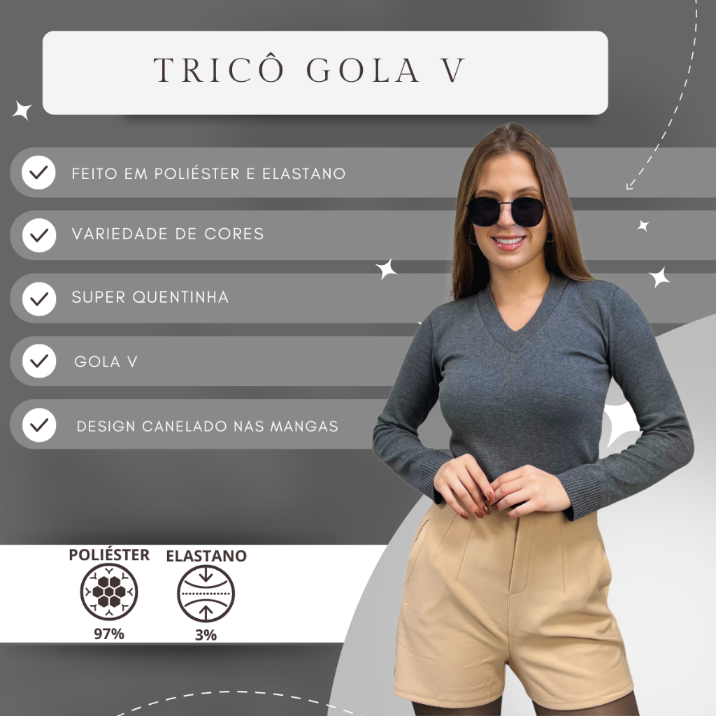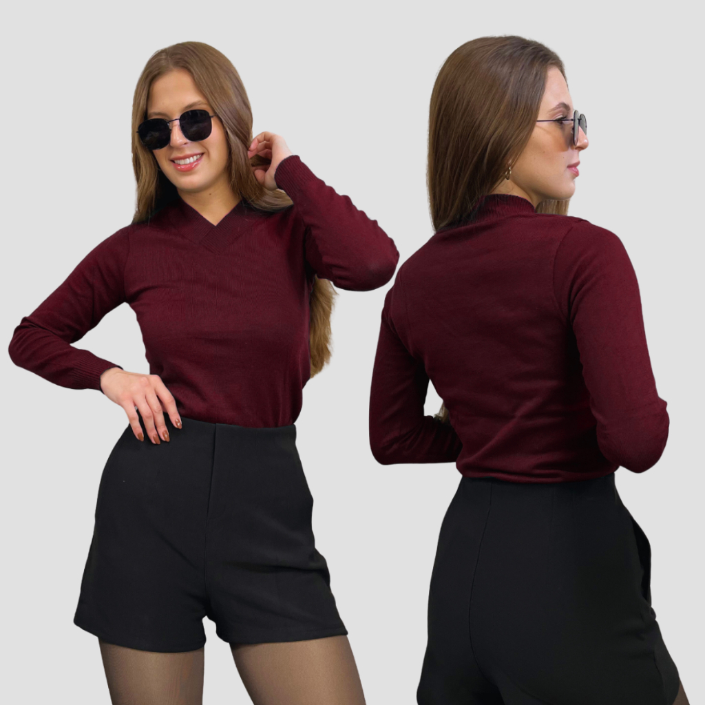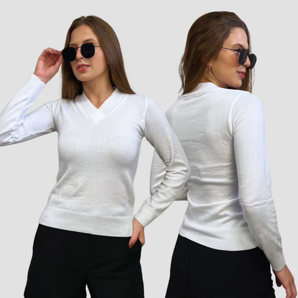 Kit 2 Blusa Feminina De Frio Tricô Suéter Feminino Manga Longa Decote V Lã Elastano