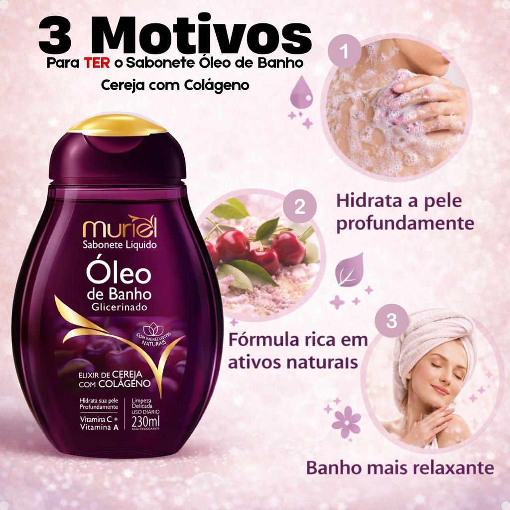 Sabonete Líquido Muriel Óleo De Banho Glicerinado Elixir de Cereja com Colágeno 230ml