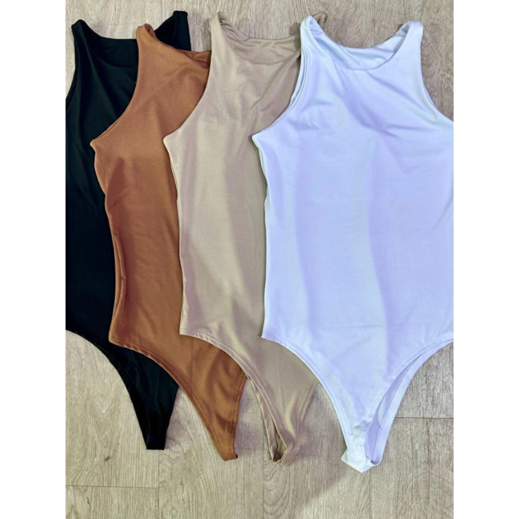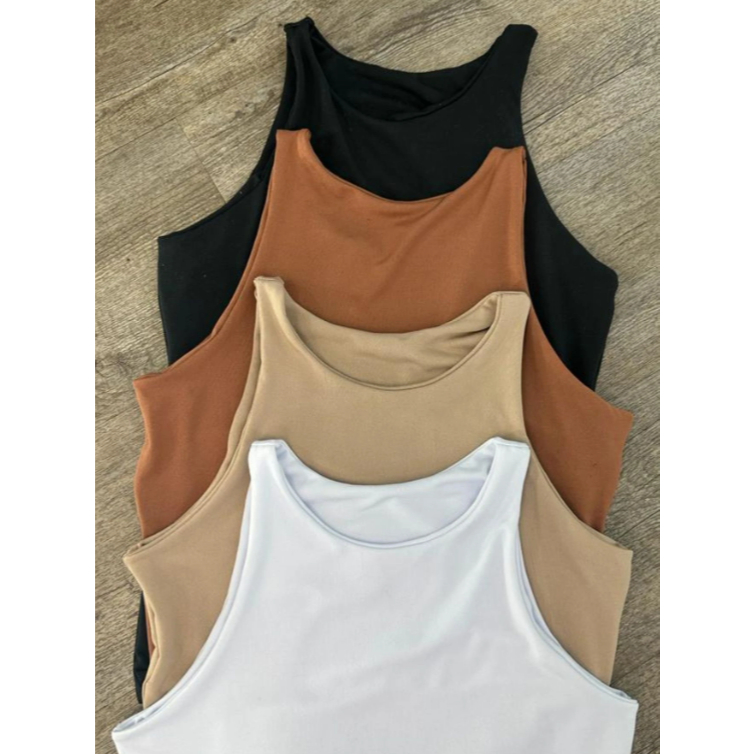 Kit 4 Bodys Bory Boddie Feminino Regata Básica Casual Suplex com Forro Duplo