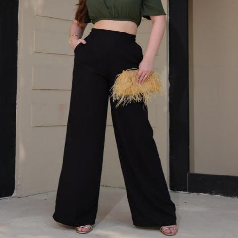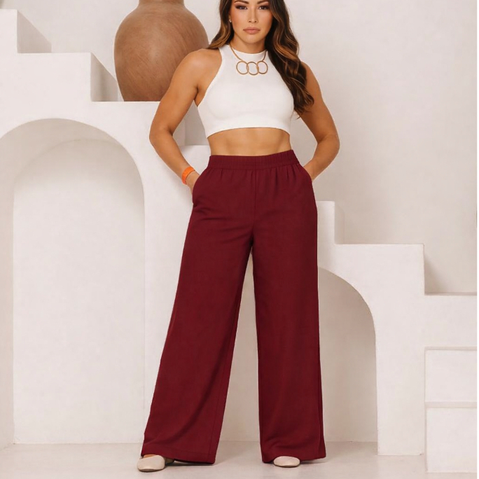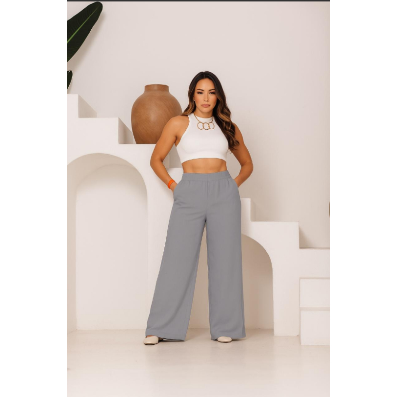 Calça Feminina Pantalona Viscolinho com Forro Bolsos Folgadinha Verao P M G E GG