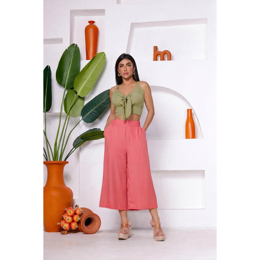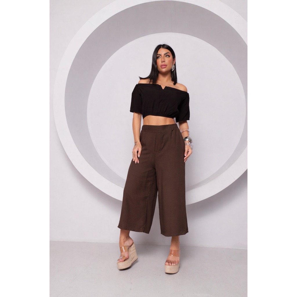 Calça Pantacourt/Pantalona Cintura Alta Viscolinho Tam.. M G GG