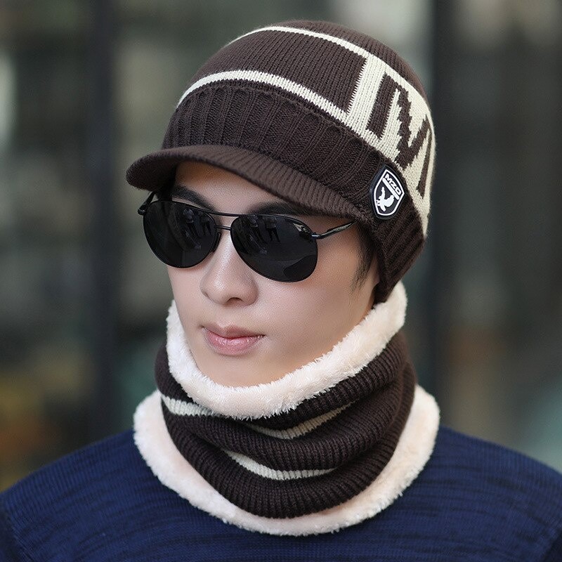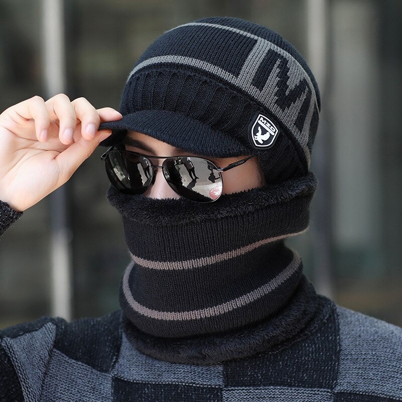Novos Homens Chapéu De Inverno Quente Com Pele Estilo Adicionar Feijão Macio Forro De Grosso Para Malha Ciclismo Frio