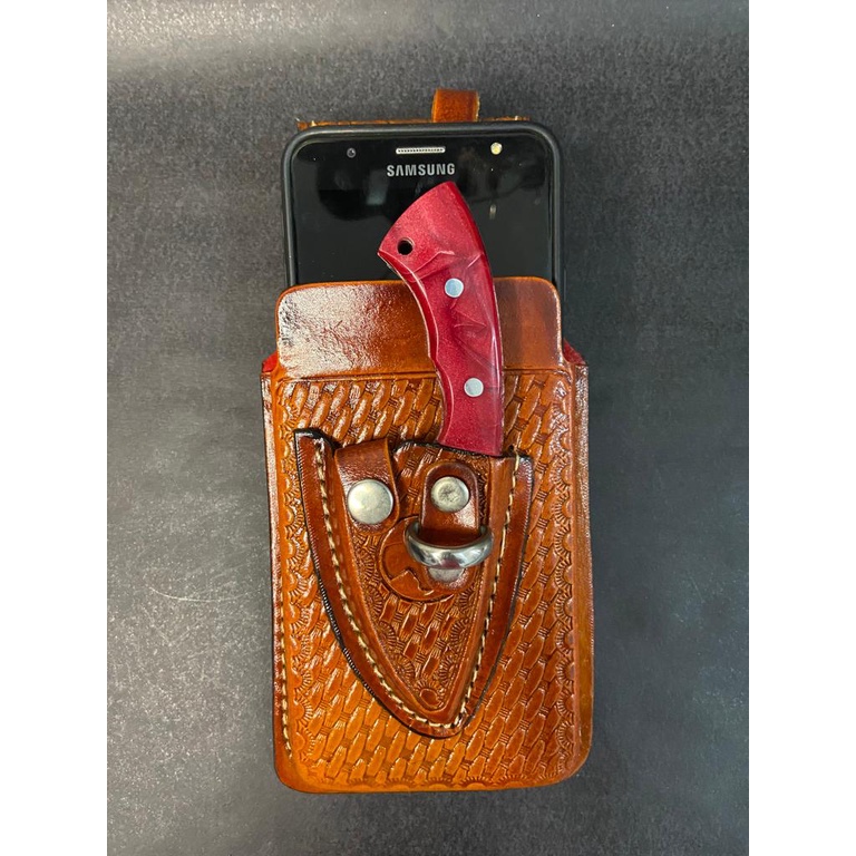 Capa Para Celular Em Couro Modelo Entalhado + Faquinha a sua escolha