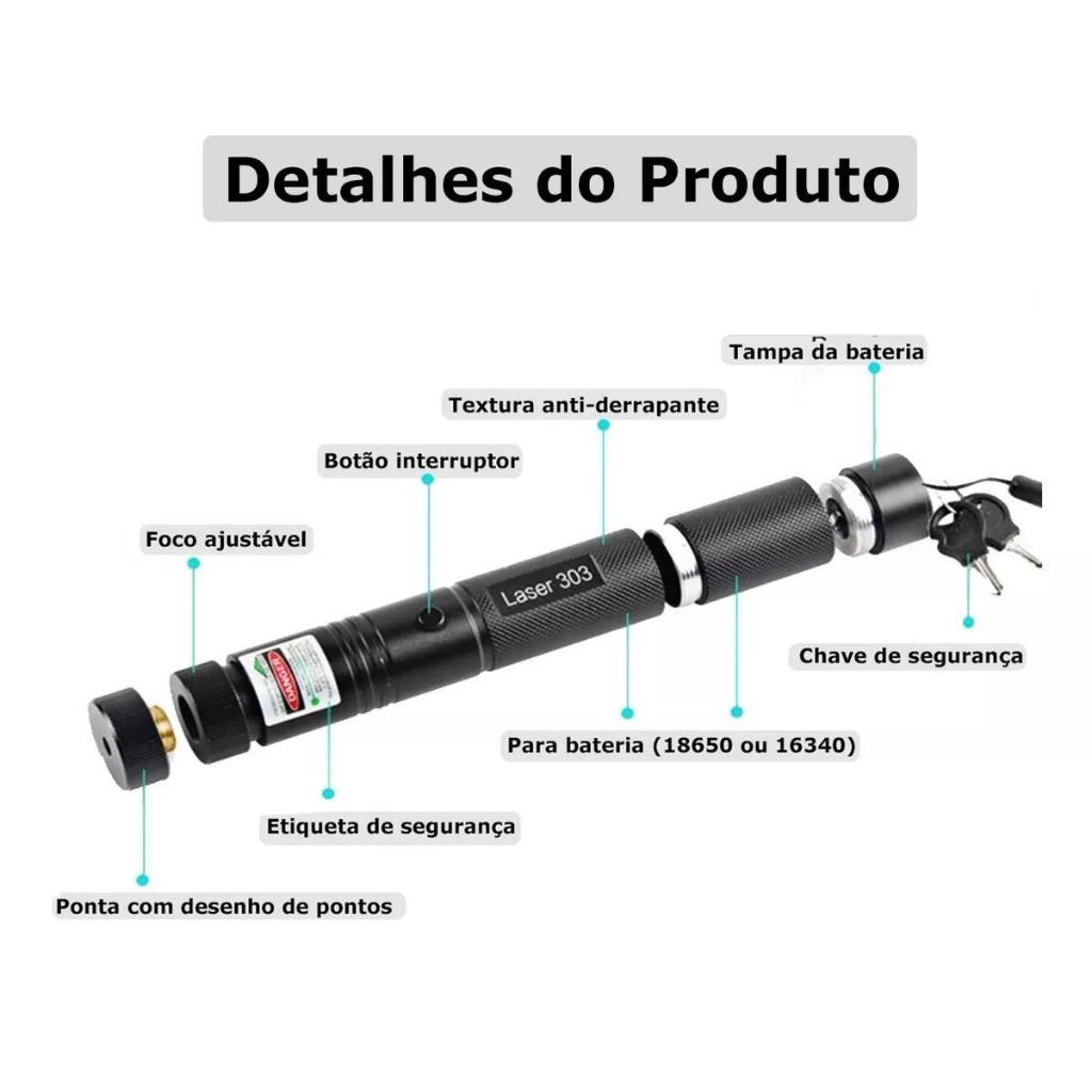 Caneta Laser Laser Pointer Verde com Bateria Recarregável com Chave de Segurança #Laser 303