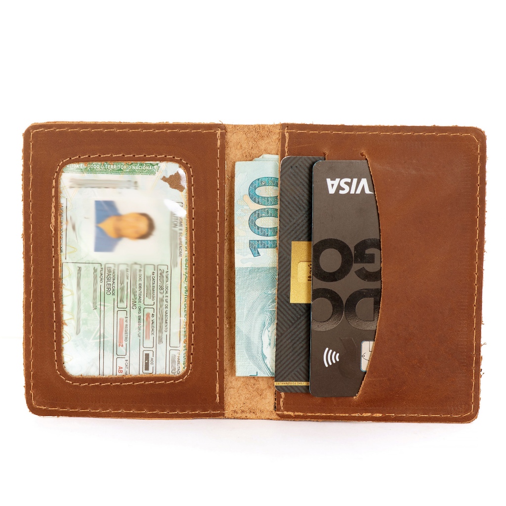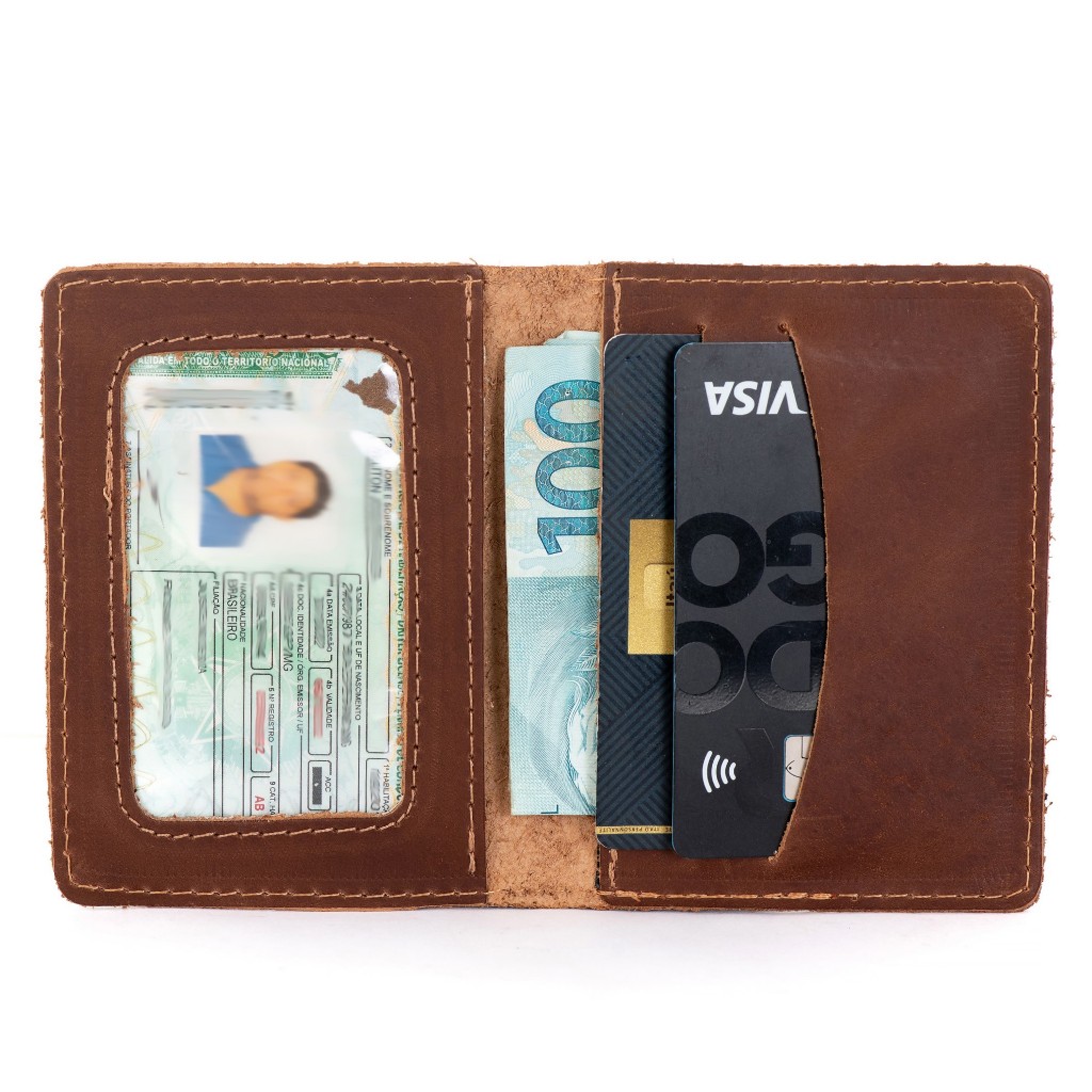 Porta Cartão Masculino Pequeno Em Couro Legitimo Slim Cedulas Cnh
