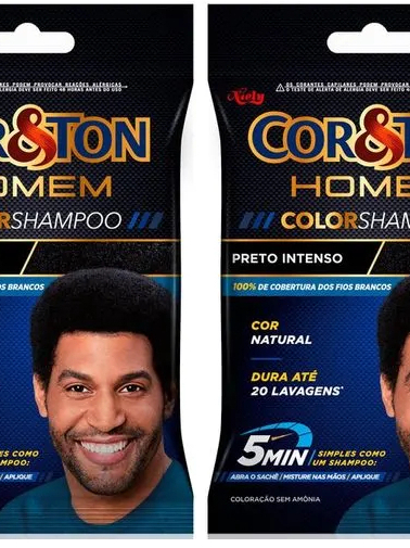 Jogo c/ 2 Shampoo 5 min Color Tonalizante Niely Cor&Ton Homem Preto Intenso sachet-10ml