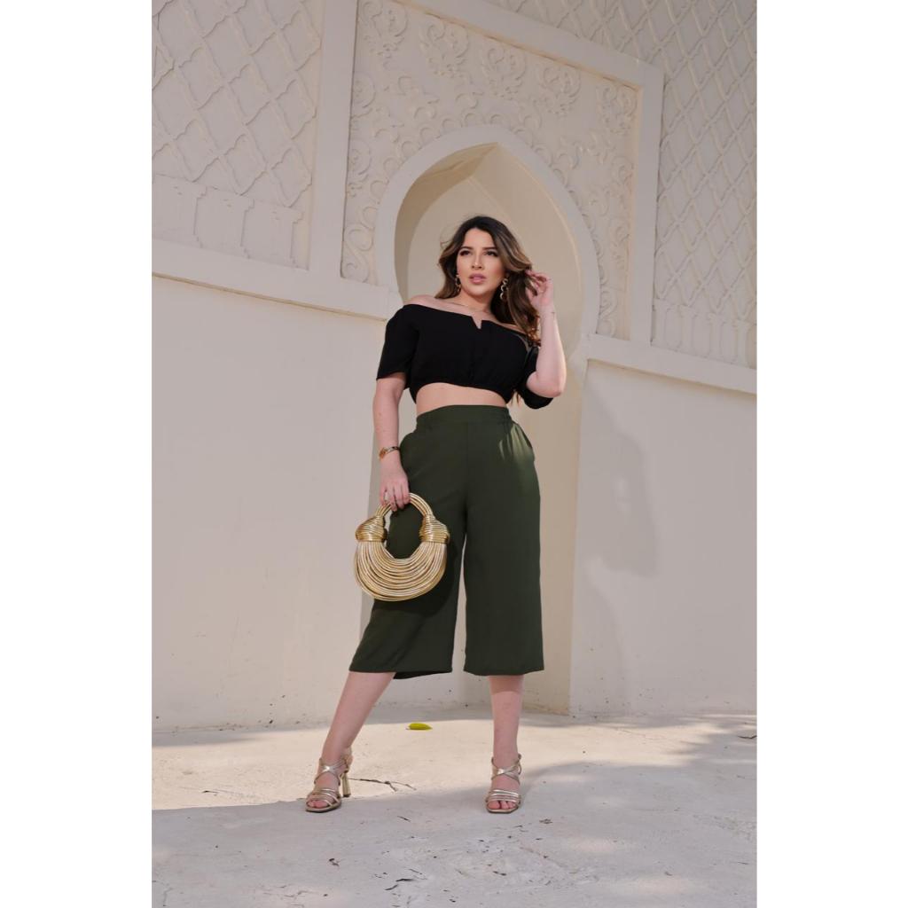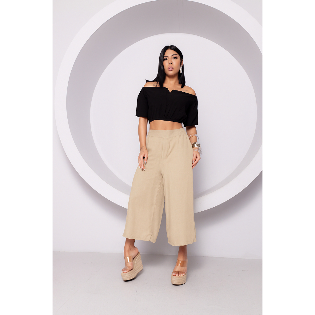 Calça Pantacourt Pantalona Viscolinho Premiun Costa Alta Bolsos Forrada Tendencia