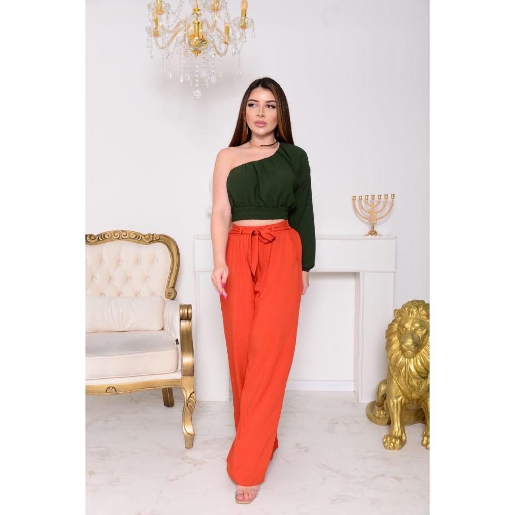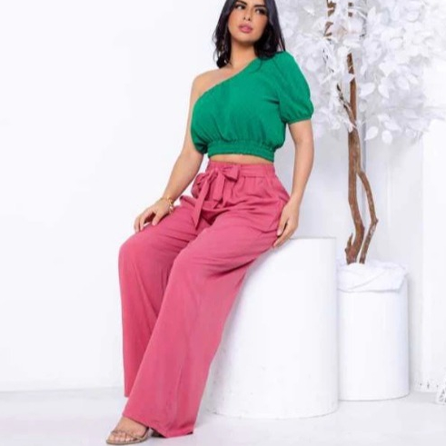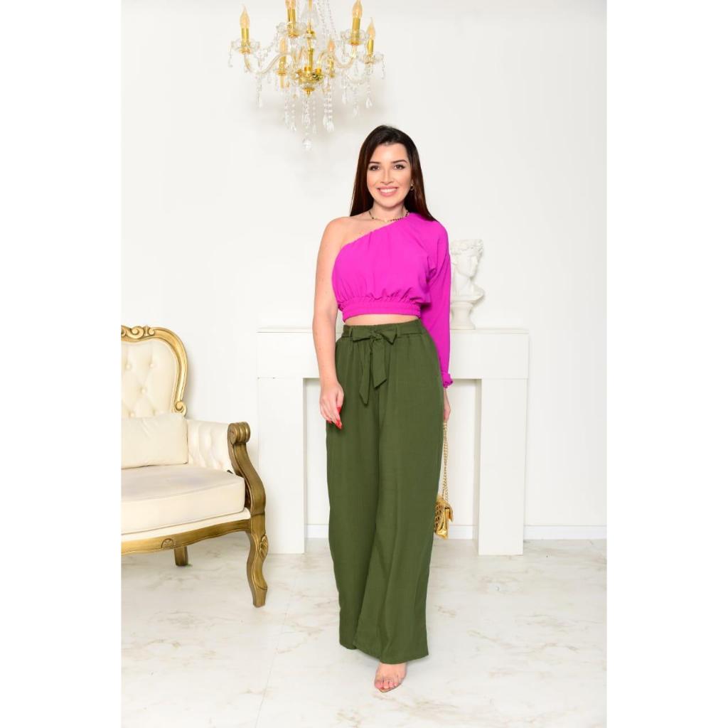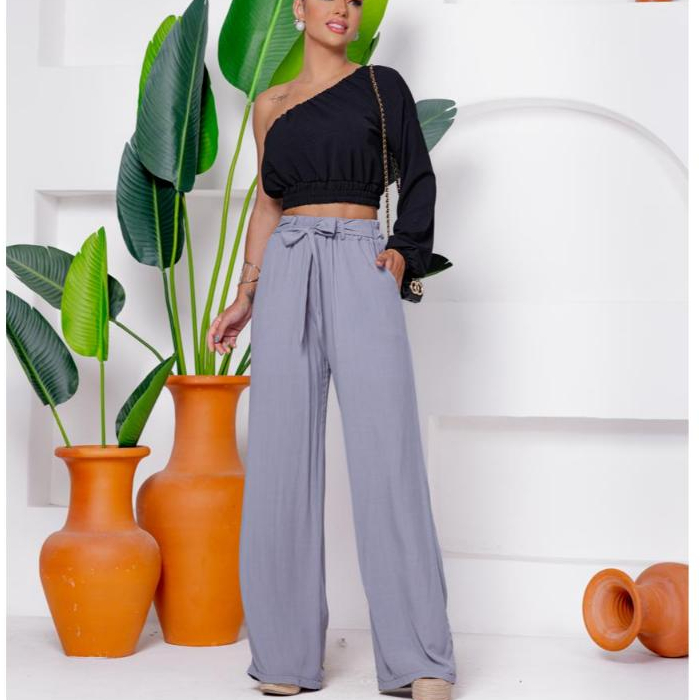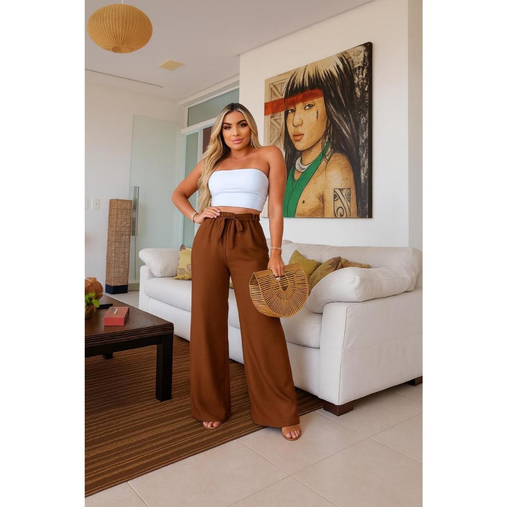 Calça Pantalona Viscolinho Premium Com Bolso Forrada e Cinto na frente PROMOÇÃO