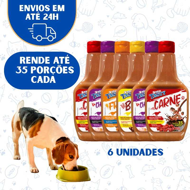 Kit6 Molho Petisco Para Raçao Cachorro Alimento Todos Tamanhos e Todas As Raças