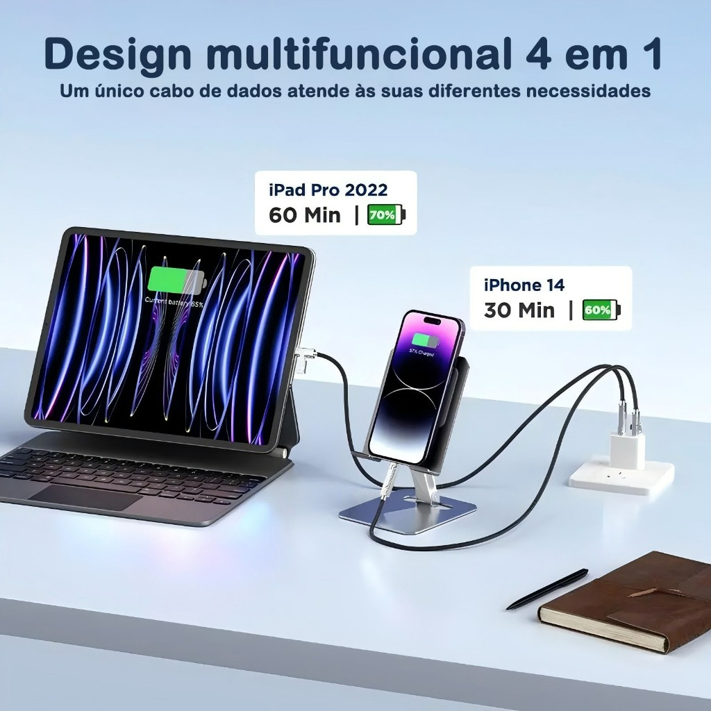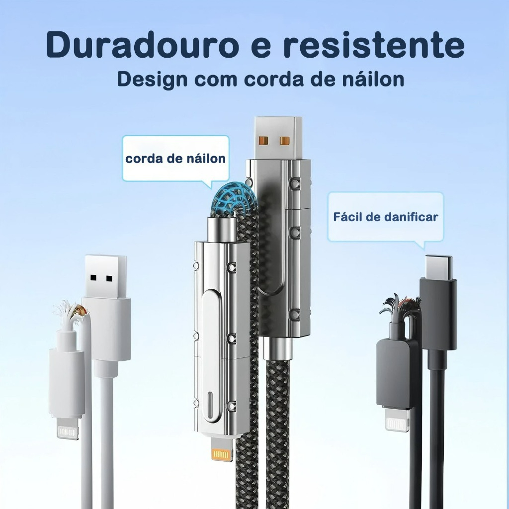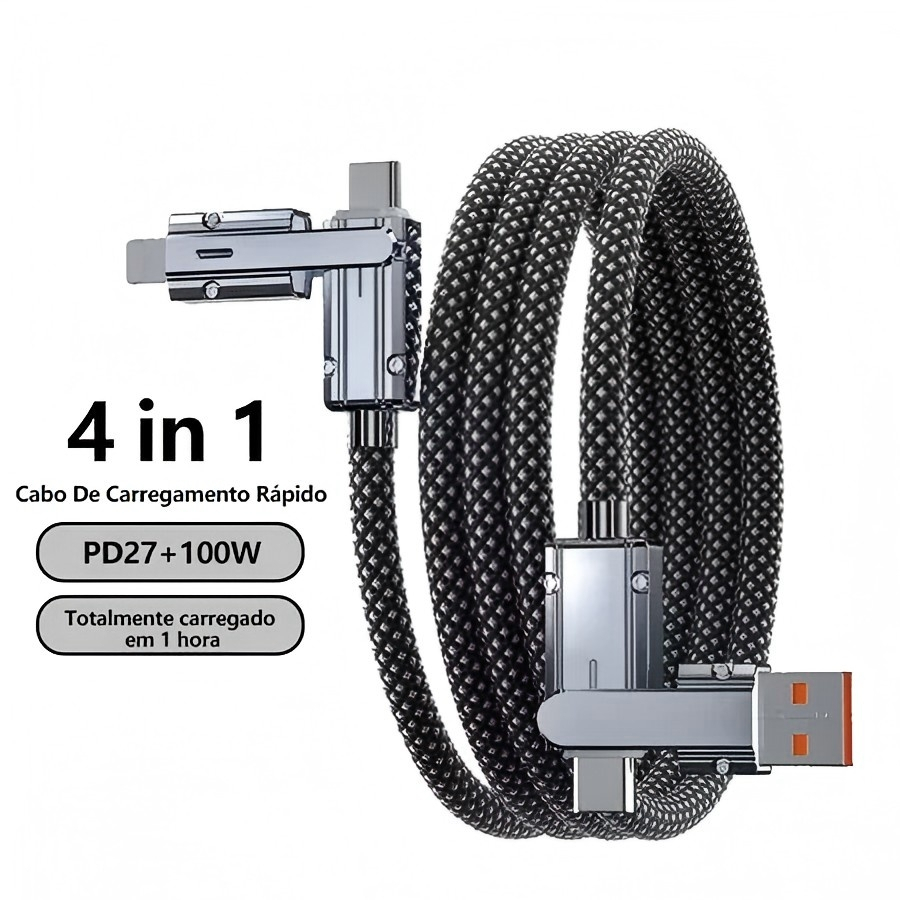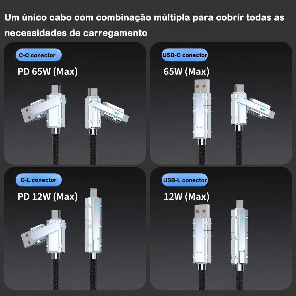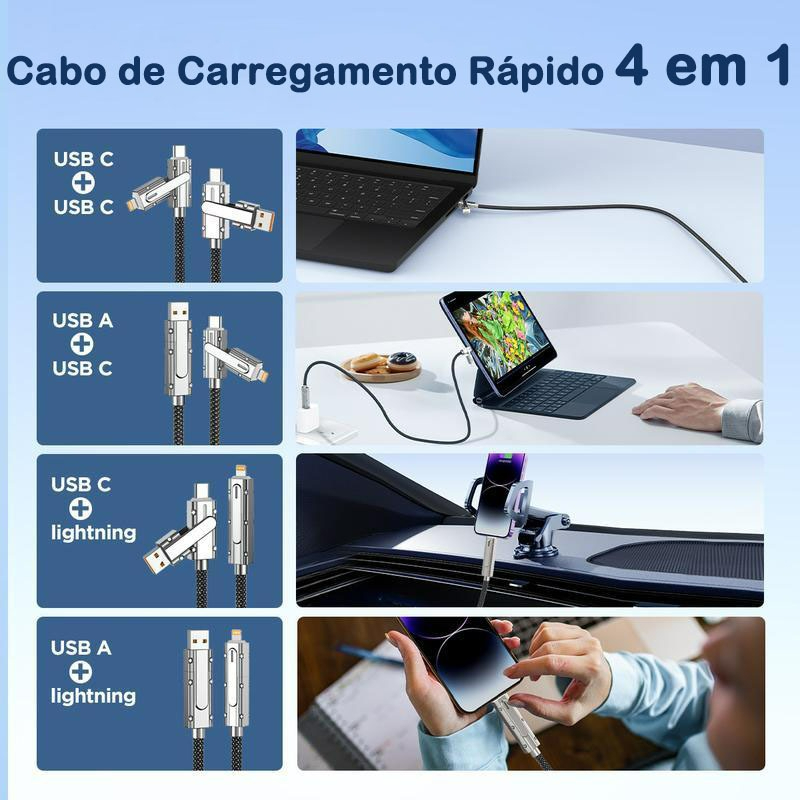 Cabo de Dados 4 em 1 Carregamento Rápido | 120cm | Tipo-C + Lightning |/60W