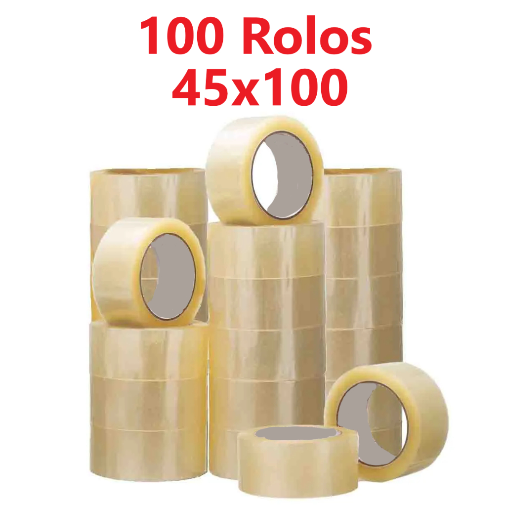 Kit com 100 Rolos de Fitas Adesiva 45mm x 100 Metros Transparente