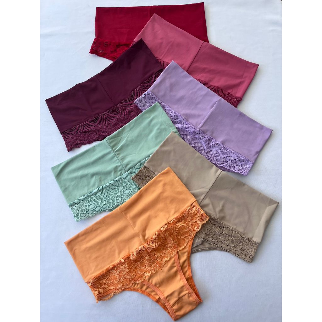 Kit 3 Cintas Femininas Modeladoras Afina Cintura Lingerie com Renda Roupas Cintura Alta