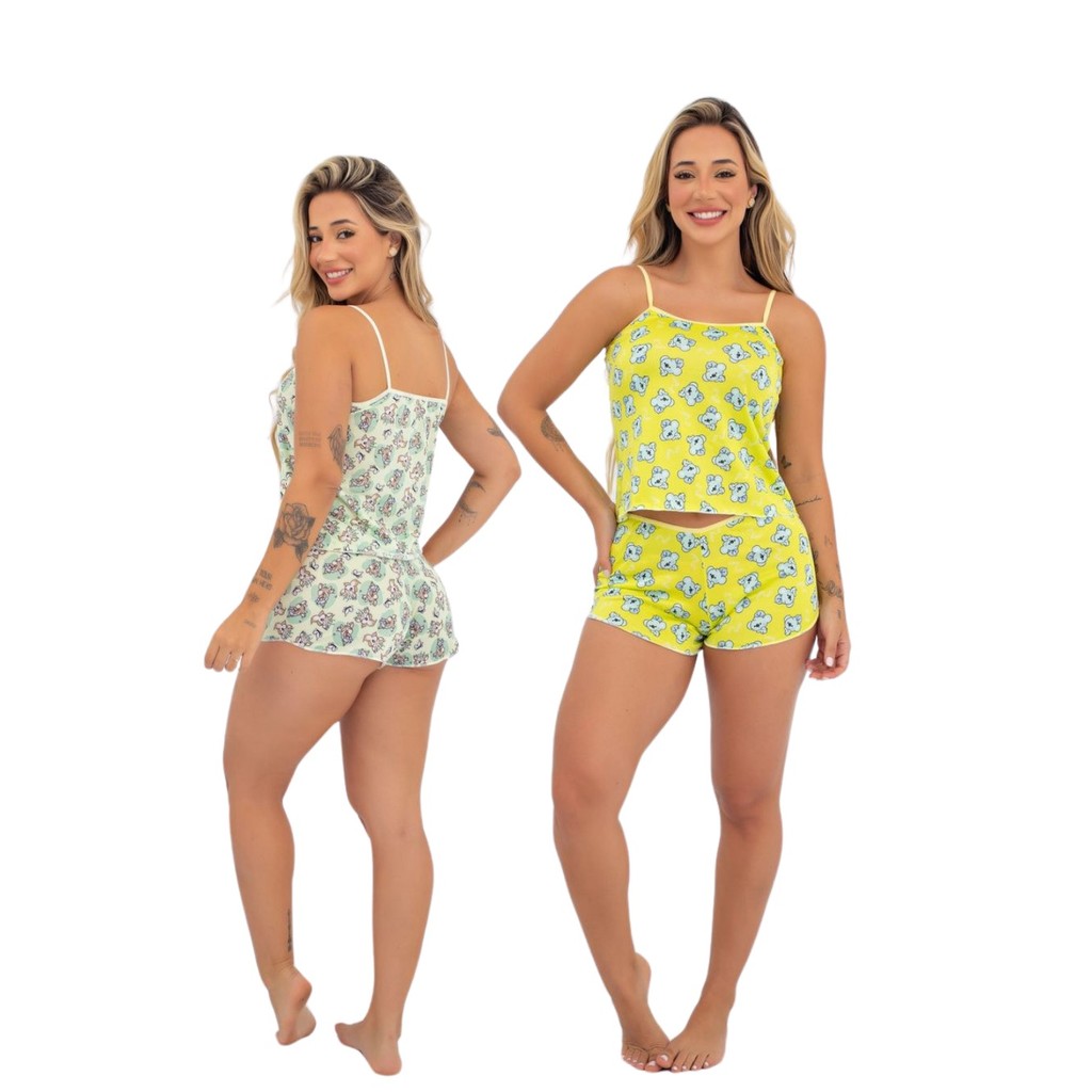 Kit Conjuntos Short Dool Pijama Baby MICRO ESTAMPADO Feminino Roupa De Dormir Noite Fresquinho