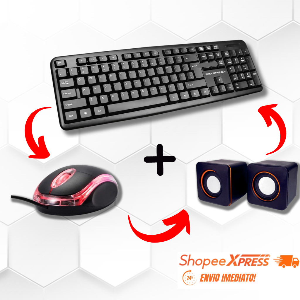 Teclado + Mouse + Caixa de Som Computador Notebook USB Tecla Macia Som Puro Potente ergonômico